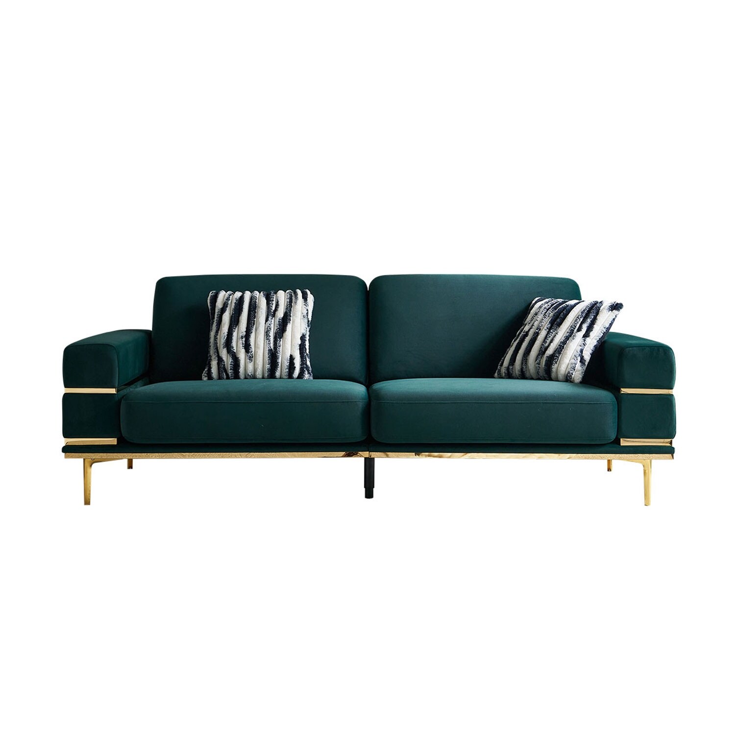 77.2" Velvet Upholstered 3-Seat Sofa with Removable Cushions, 2 Pillows & Gold Metal Legs