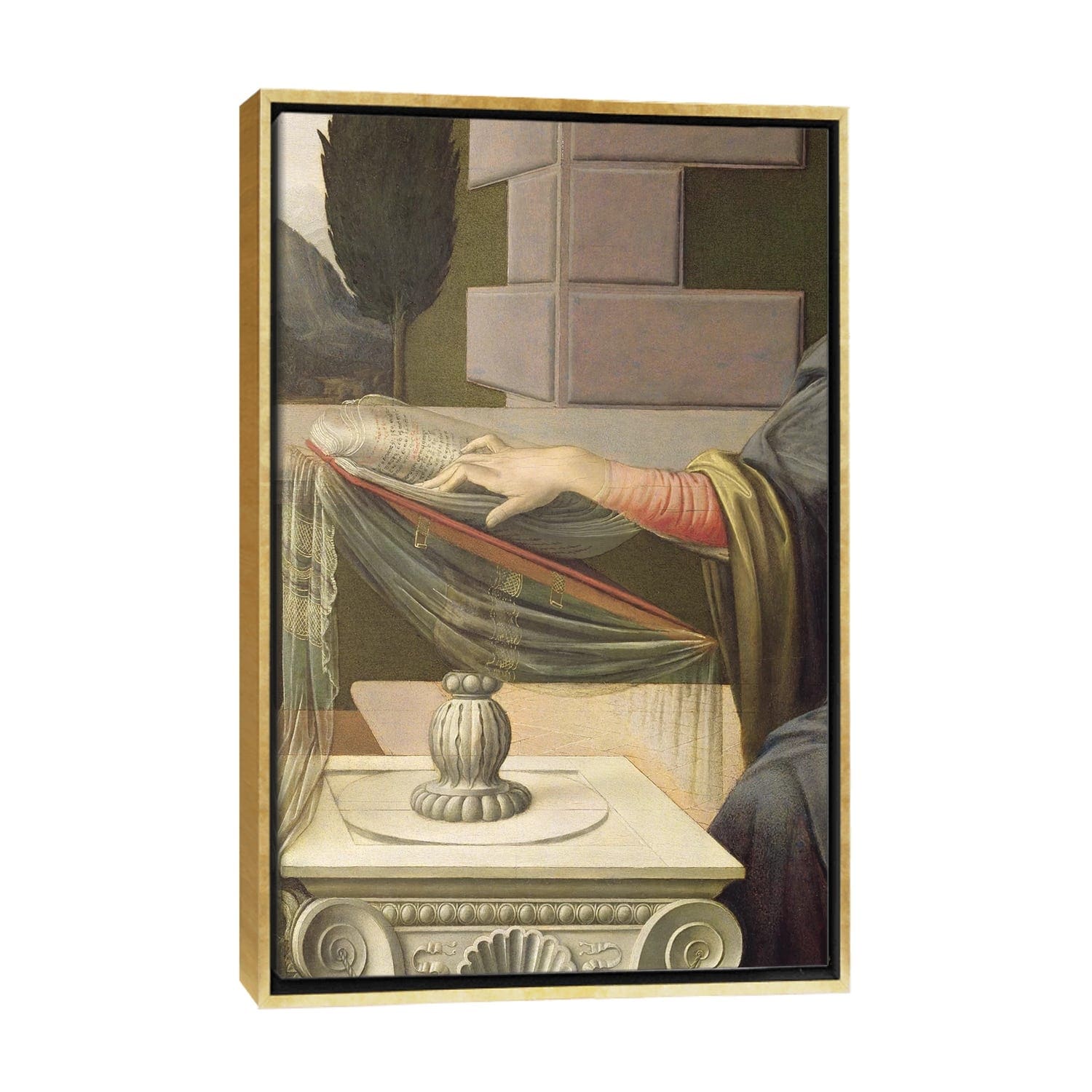 iCanvas "Detail of the Virgin Mary, from the Annunciation, 1472-75 " by Leonardo da Vinci Framed Canvas Print