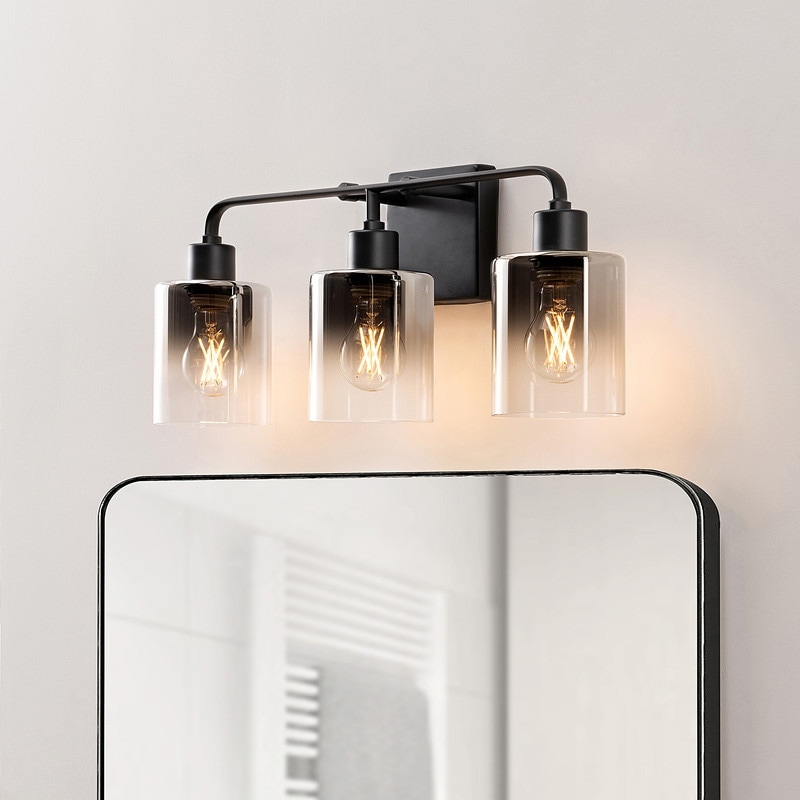 KAWOTI Modern 3-Light Cylinder Glass Bathroom Vanity Light with Bulbs - 21.7” L x 5.7” W x 8.9” H