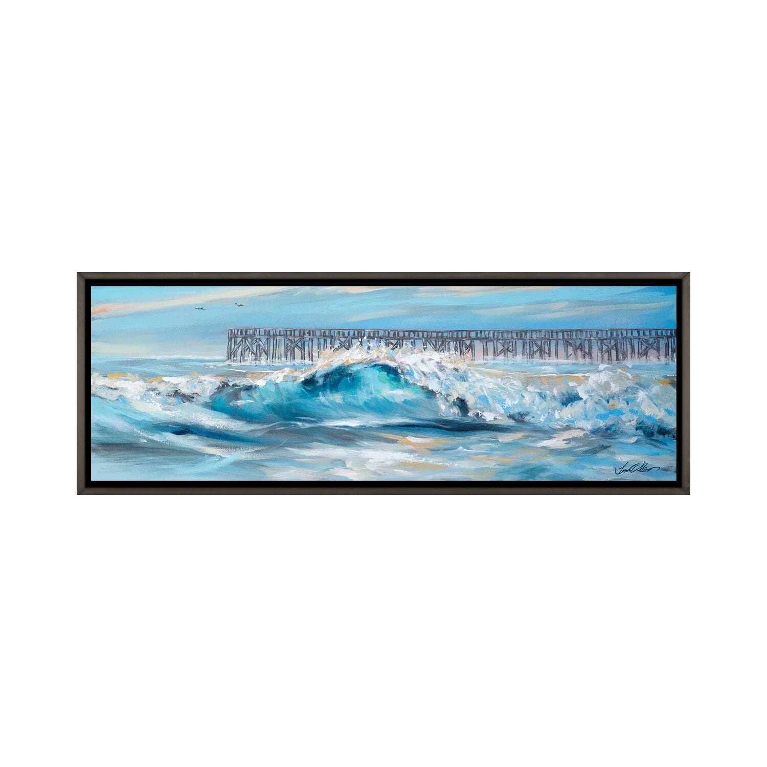 iCanvas "Surf By Pier" by Linda Olsen Framed