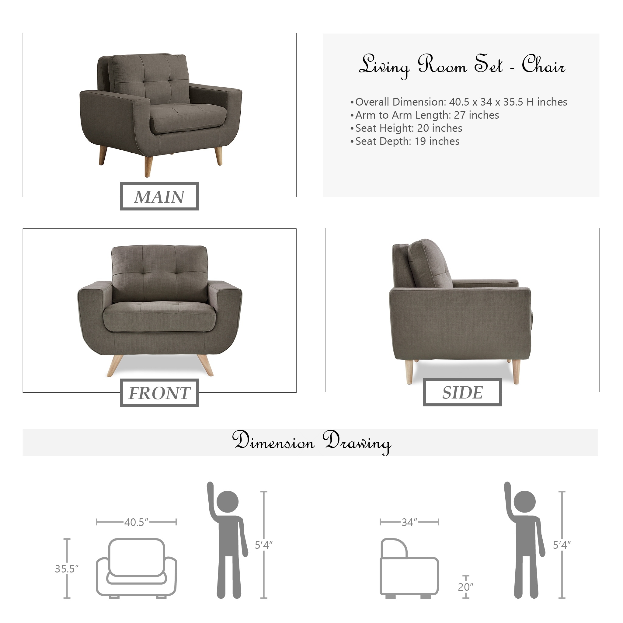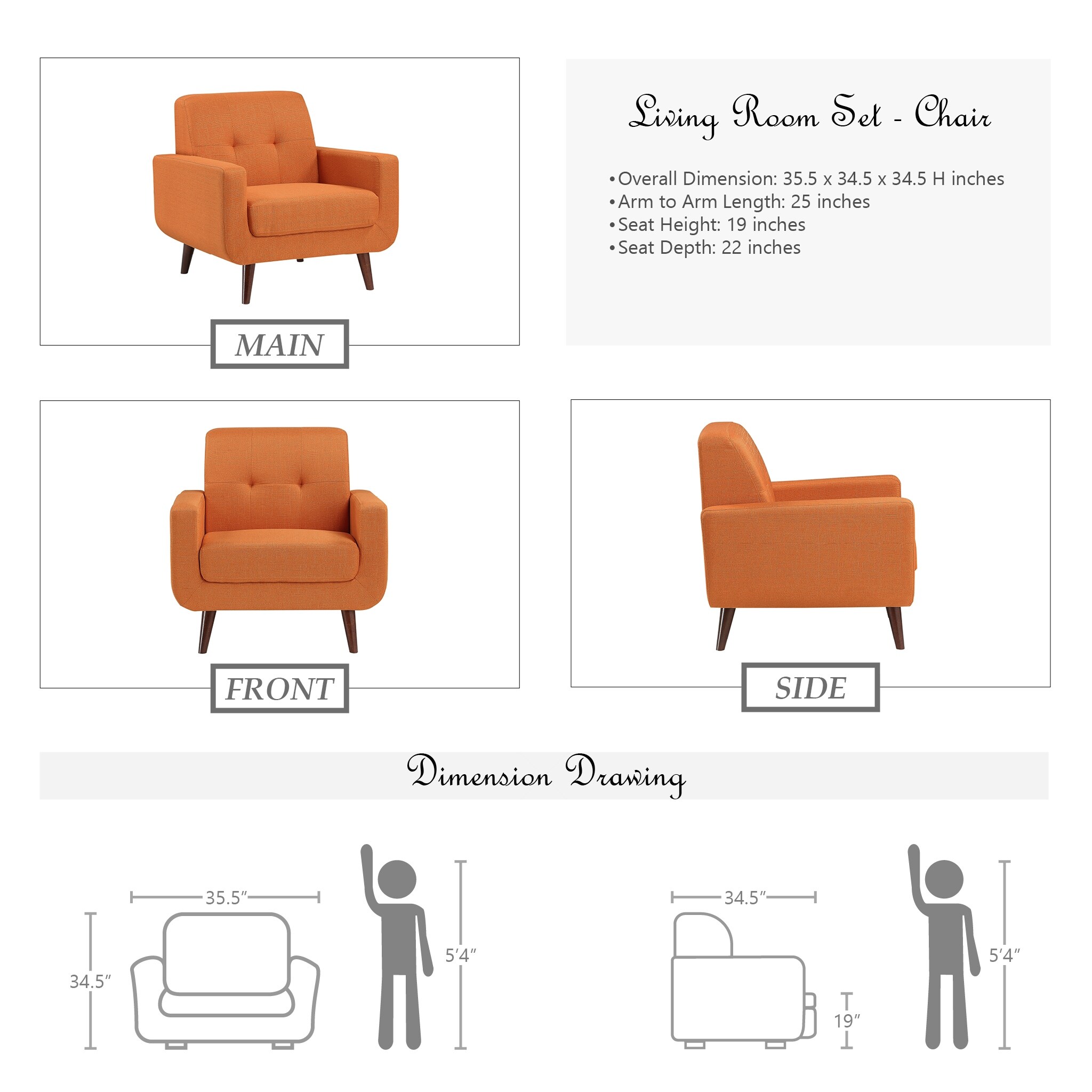 Harrad Tufted Mid-Century 3 Piece Living Room Set