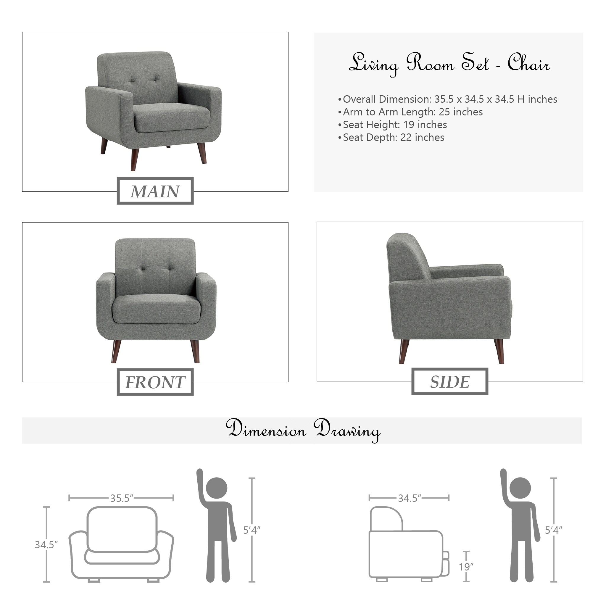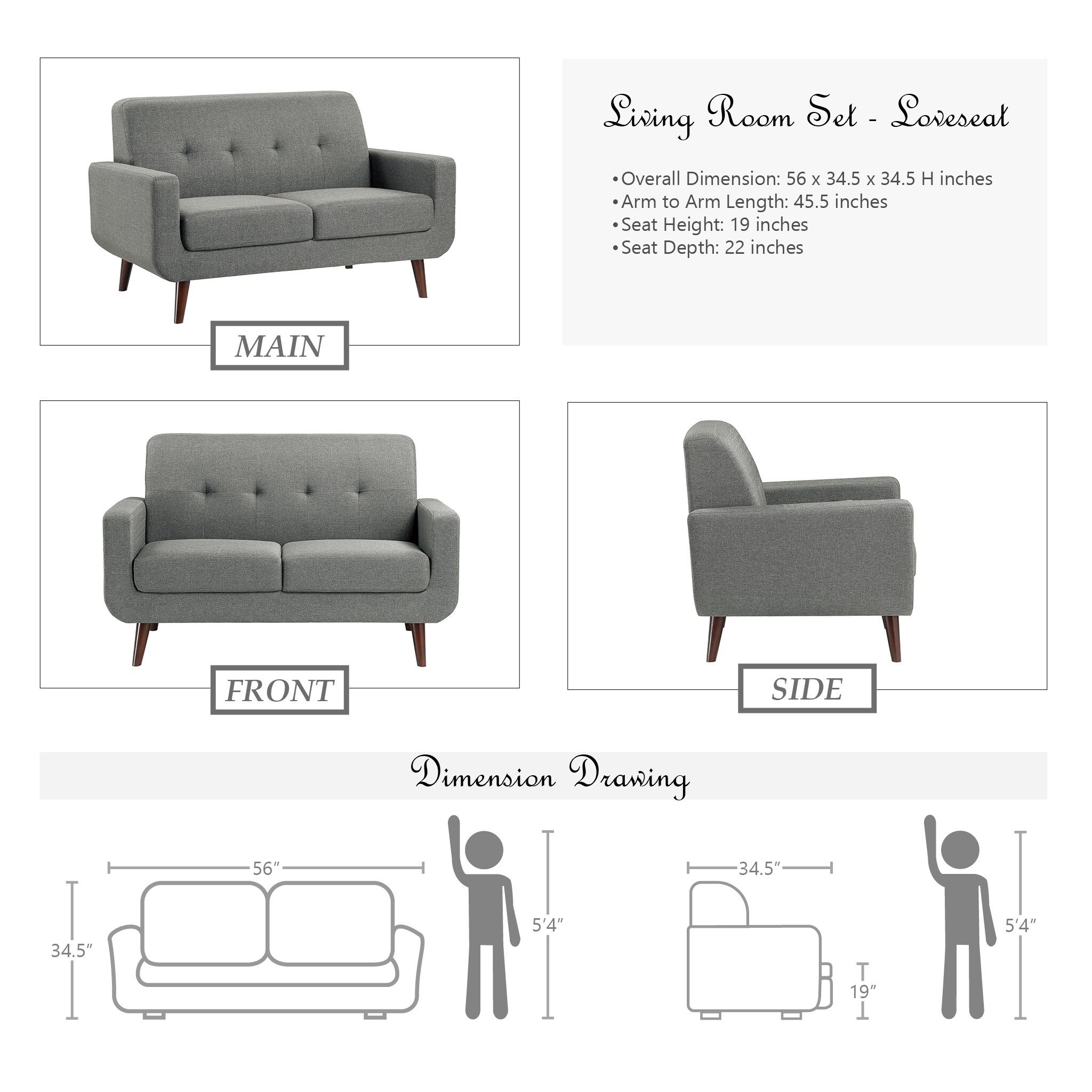 Hamilton Tufted Mid Century 3-Piece Living Room Set-Sofa Lovesest Chair
