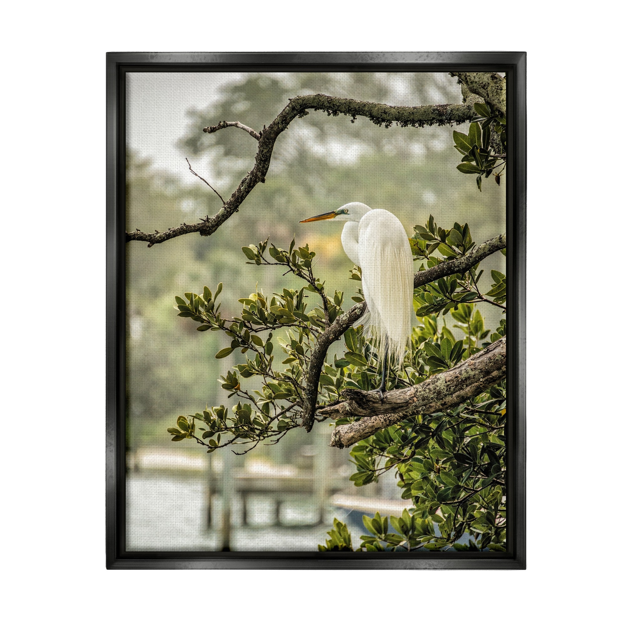 Stupell Industries Elegant Bird Perched Lakeside Tree Floating Framed Canvas Wall Art, Design by Mary Lou Photography