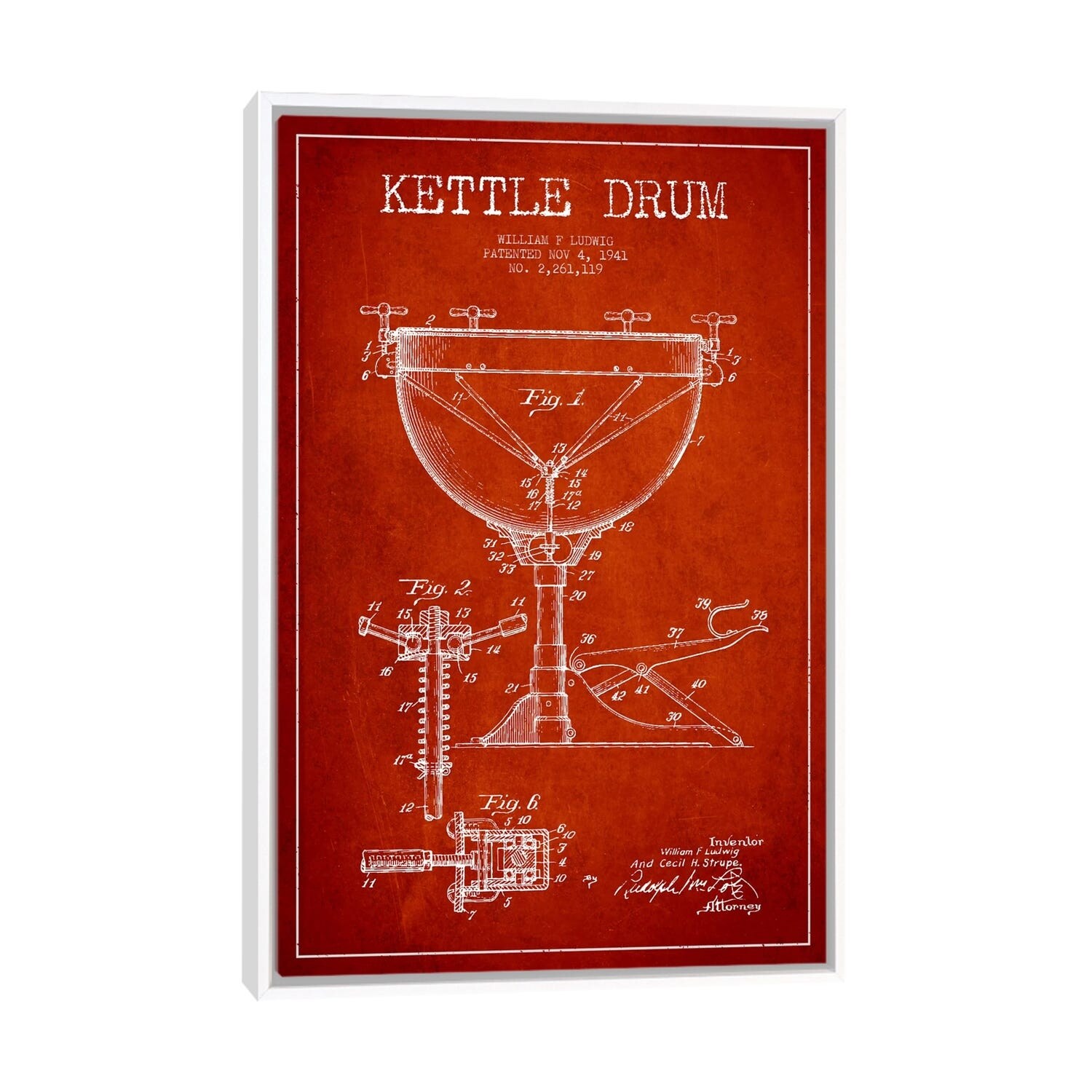 iCanvas "Ludwig Kettle Red Patent Blueprint" by Aged Pixel Framed Canvas Print