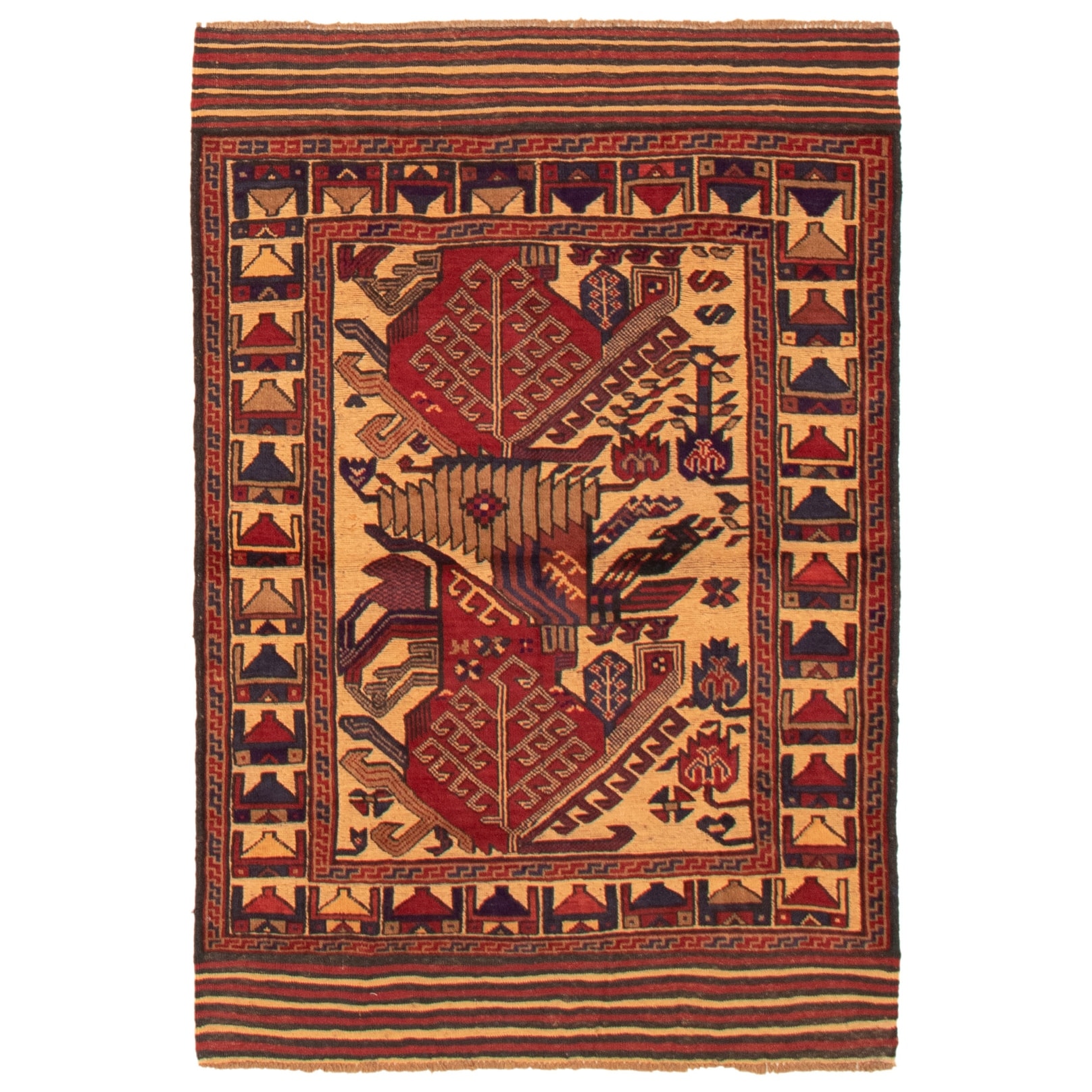 ECARPETGALLERY Hand-knotted Royal Baluch Tan Wool Rug - 3'3 x 5'9