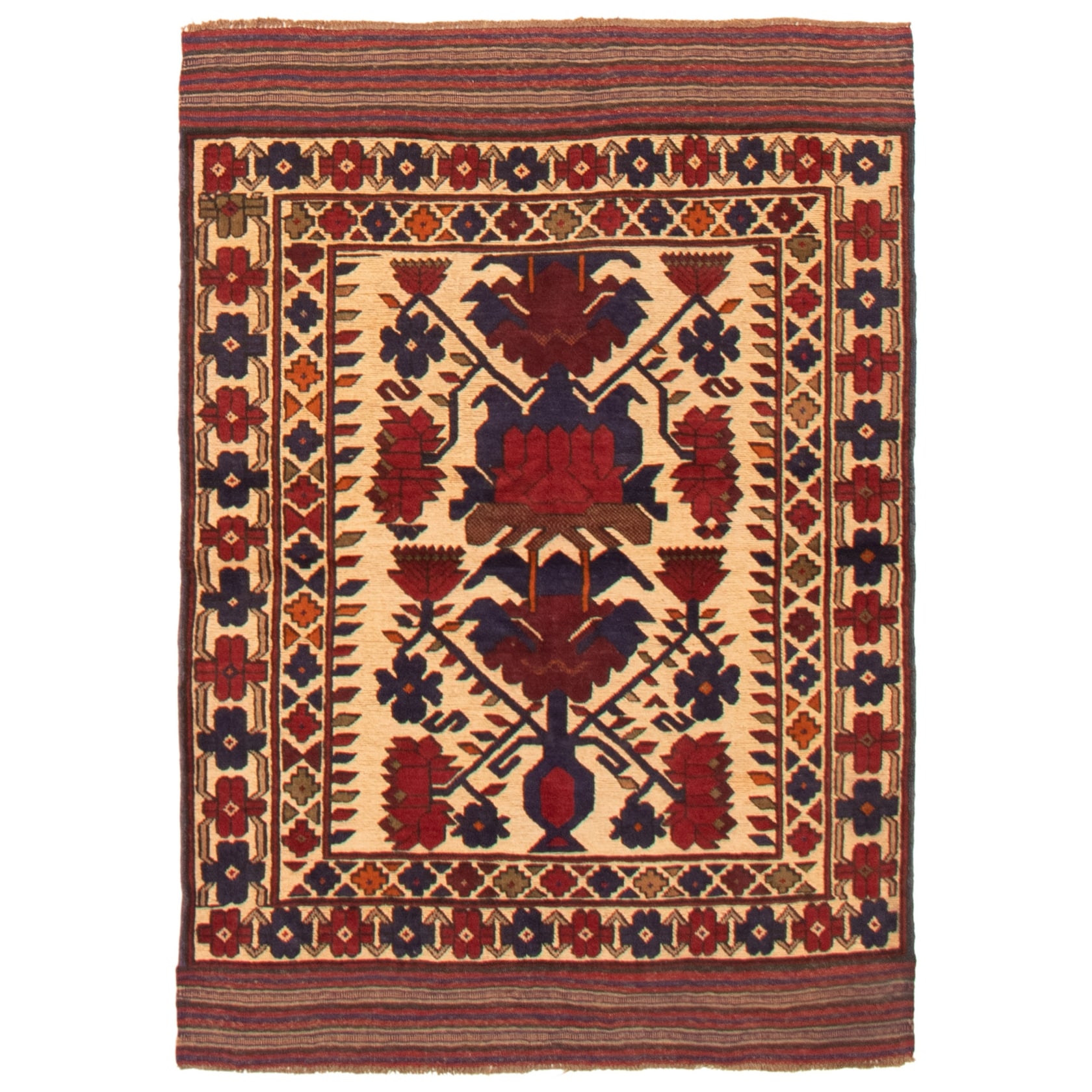 ECARPETGALLERY Hand-knotted Baluch Tan Wool Rug - 3'3 x 5'7