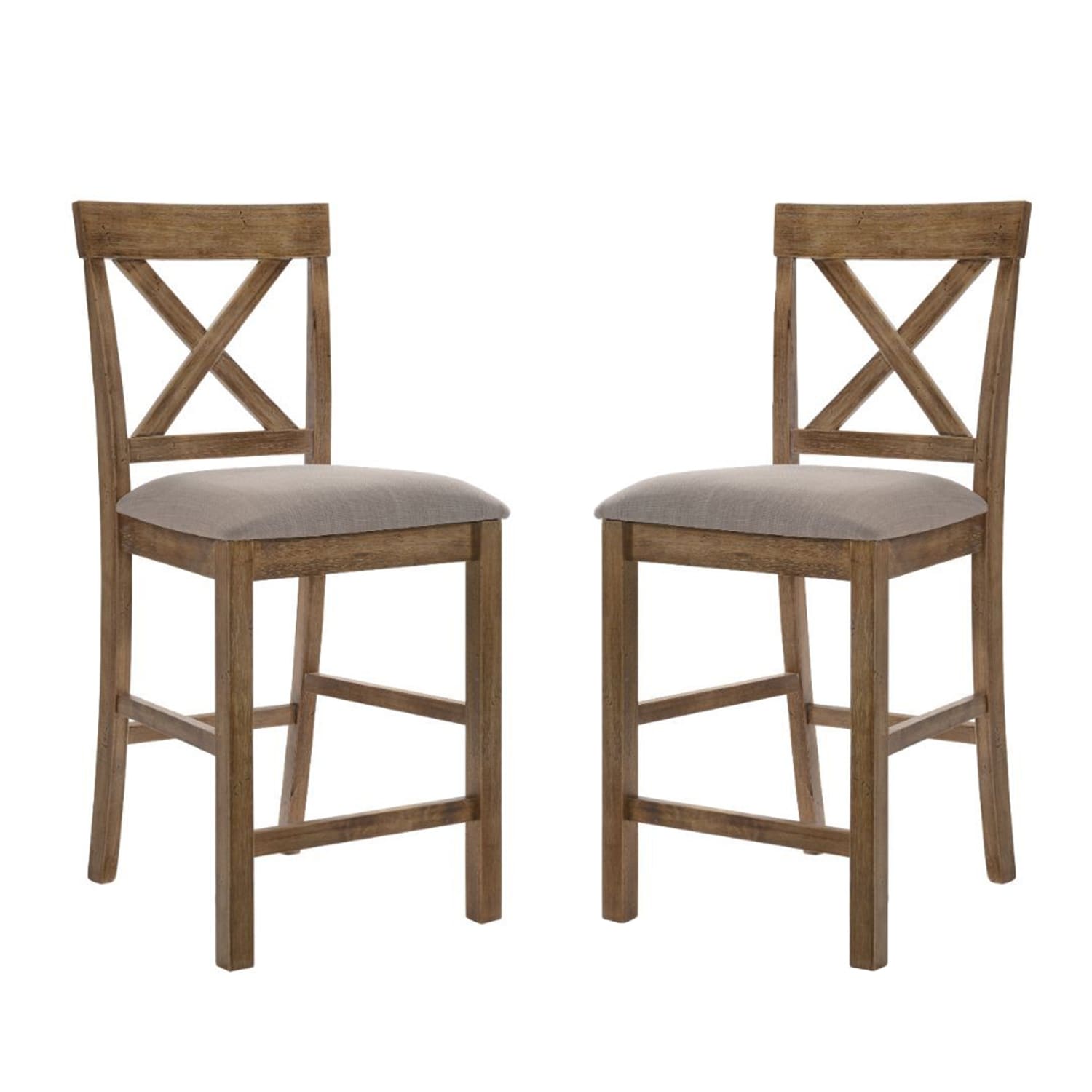 Set of 2 Counter Height Chair in Tan Linen and Weathered Oak