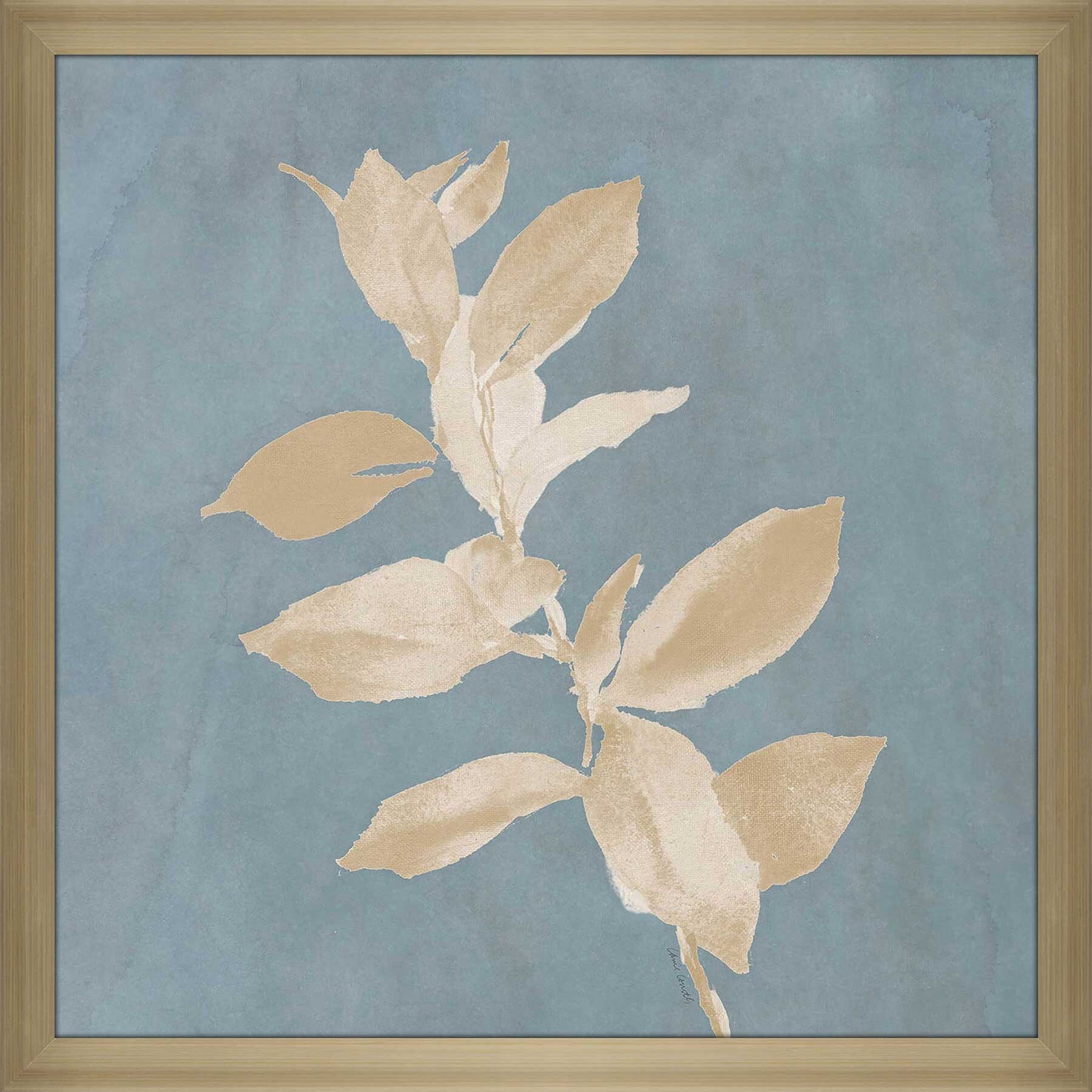 "Tan Leaf on Blue Square I (Square)" Print on Acrylic