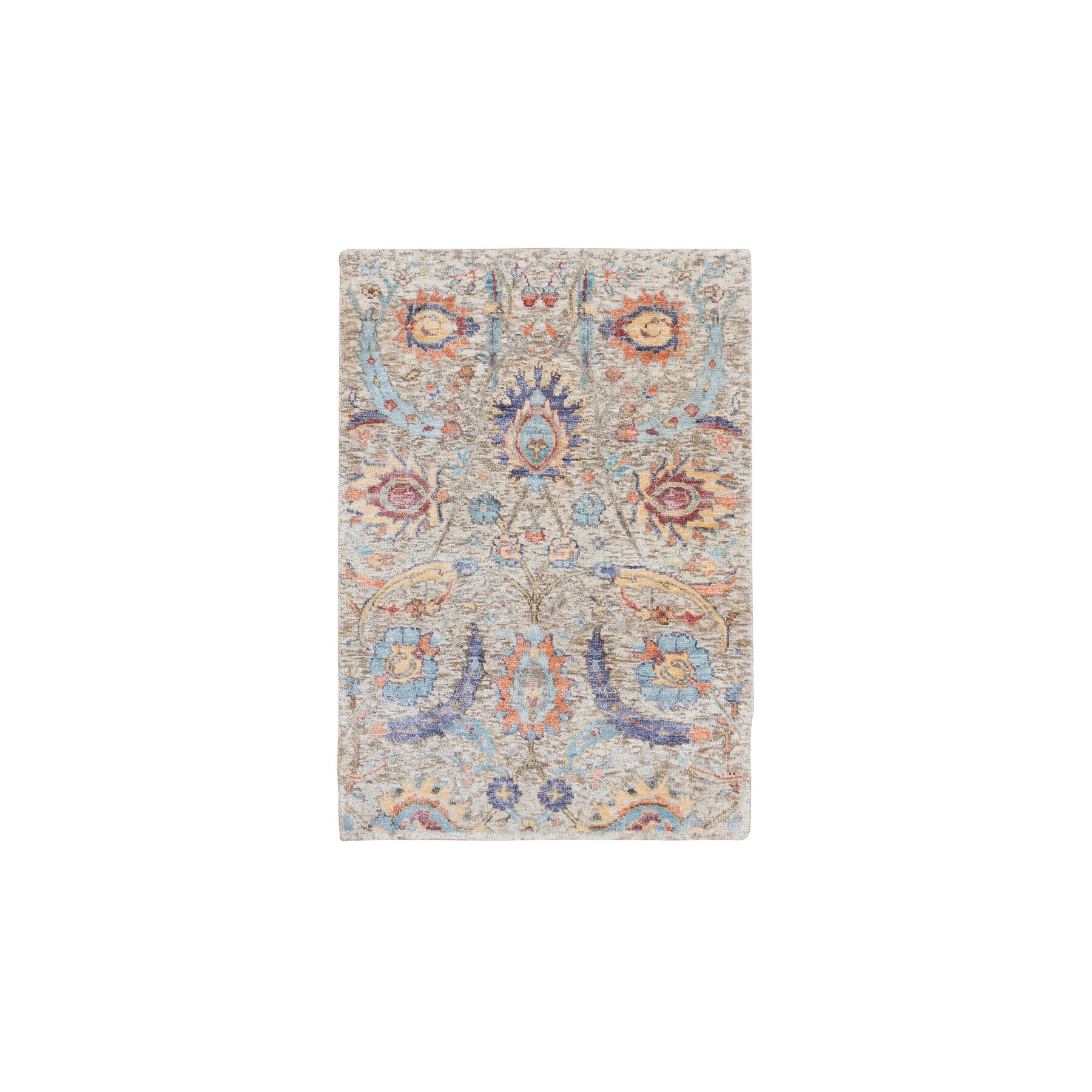Shahbanu Rugs Tan, Hand Knotted, Sickle Leaf Design Silk With Textured Wool, Mat Oriental Rug (2'1" x 3'0") - 2'1" x 3'0"