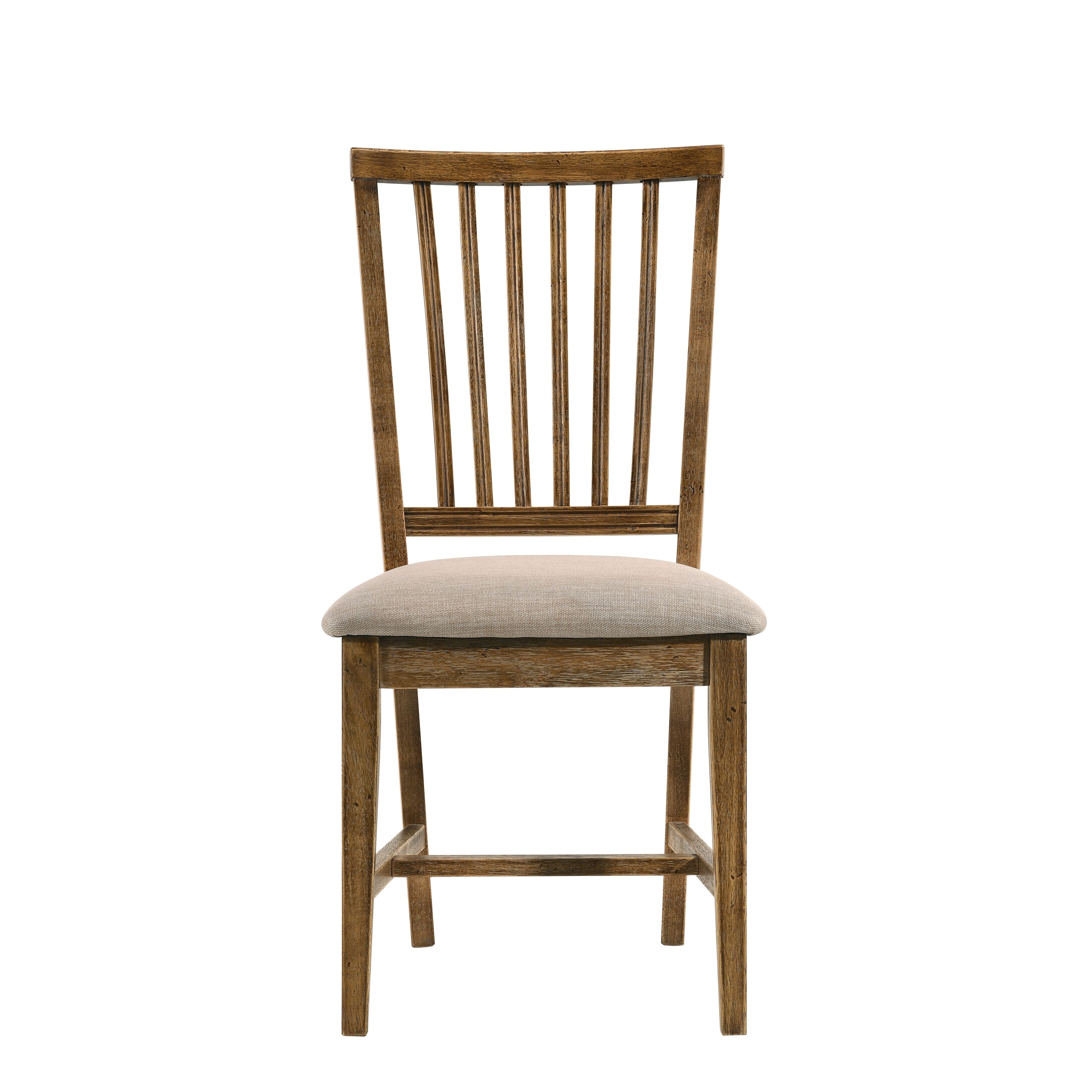 Wallace II Side Chair (Set-2) with Wooden Apron Seat & Wooden Tapered Leg, Tan Linen & Weathered Oak