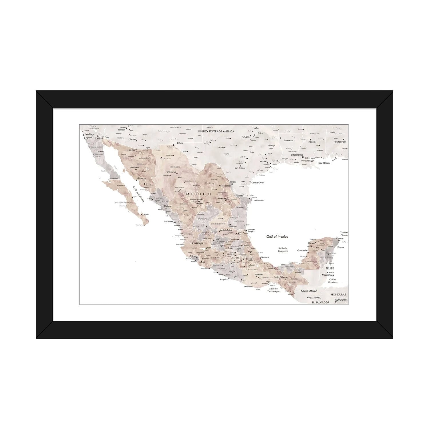 iCanvas "Detailed Watercolor World Map of Mexico With Cities" by blursbyai Framed Canvas Print