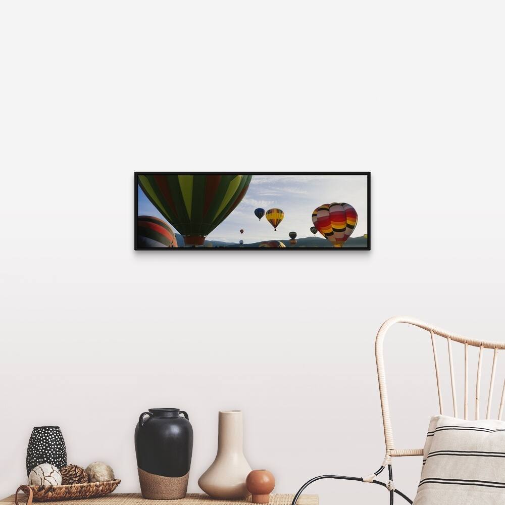 "Hot air balloons in the sky, Taos, New Mexico" Black Float Frame Canvas Art