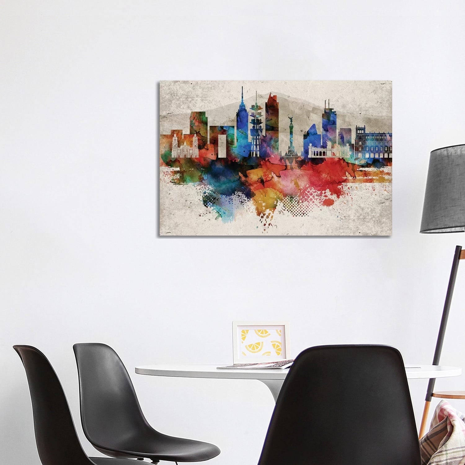 iCanvas "Mexico City Colorful Watercolor Skyline" by WallDecorAddict