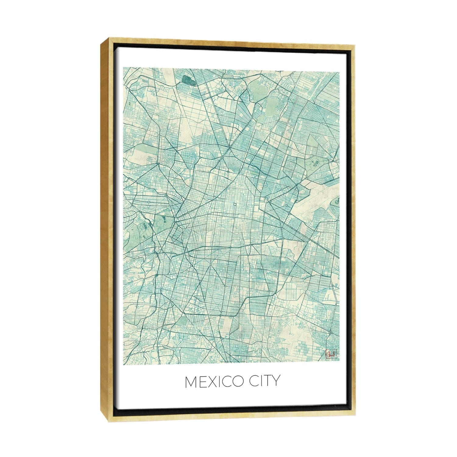 iCanvas "Mexico City Vintage Blue Watercolor Urban Blueprint Map" by Hubert Roguski Framed Canvas Print