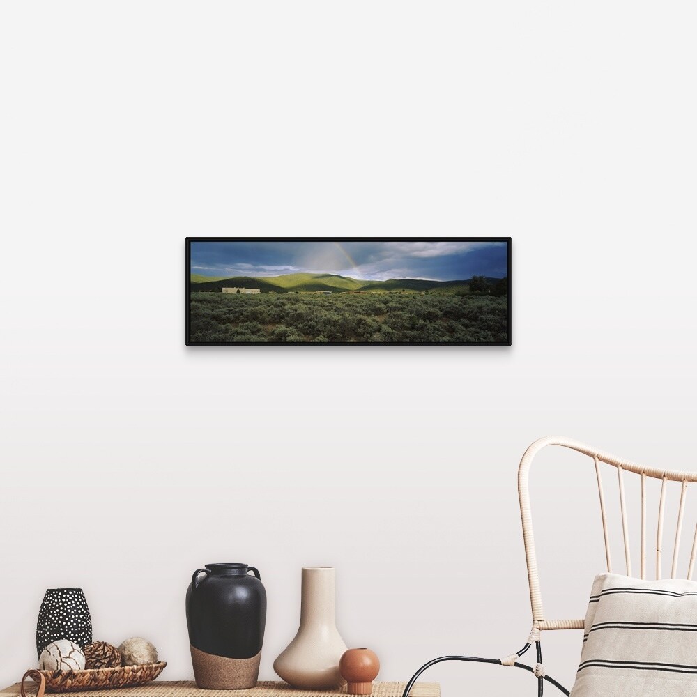 "Rainbow over a rolling landscape, Taos, New Mexico" Black Float Frame Canvas Art
