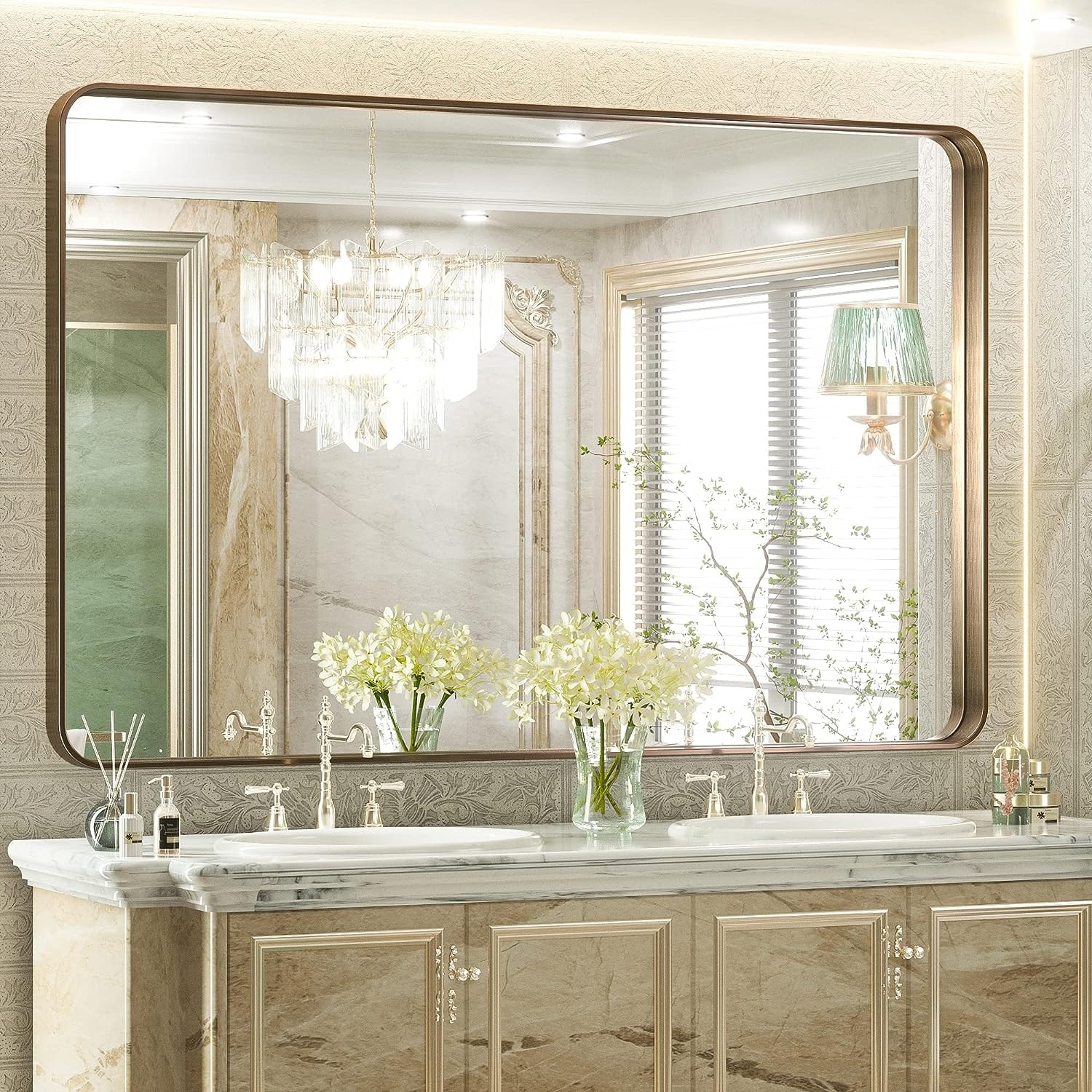 KEONJINN Modern Metal Framed Bathroom Vanity Wall Mounted Mirror.
