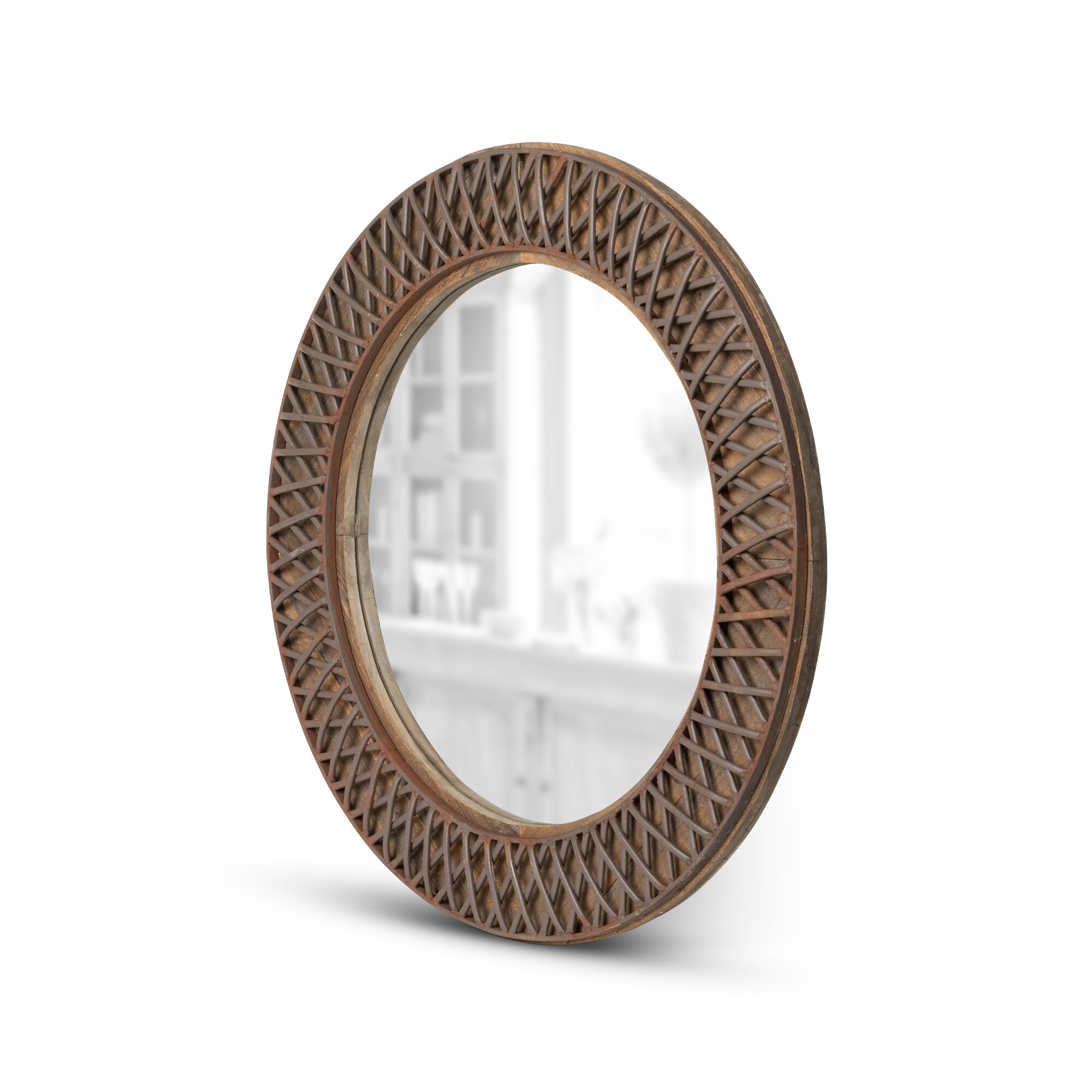 Iron Lattice Round Wall Mirror - 34.25"L x 34.25"W x 2"H