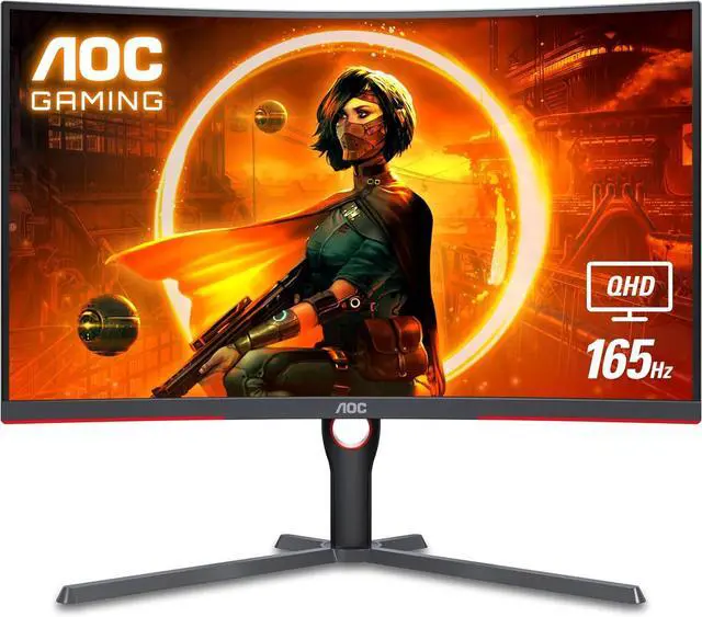 AOC CQ32G3SU 32" Curved Frameless Gaming Monitor, 2K QHD 2560x1440, 165Hz 1ms, AMD FreeSync Premium, Height Adjustable, 2X HDMI 2.0, 1x Display Port