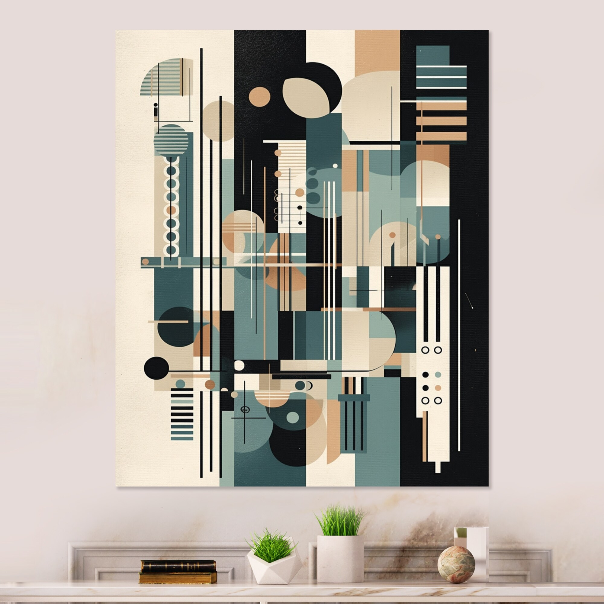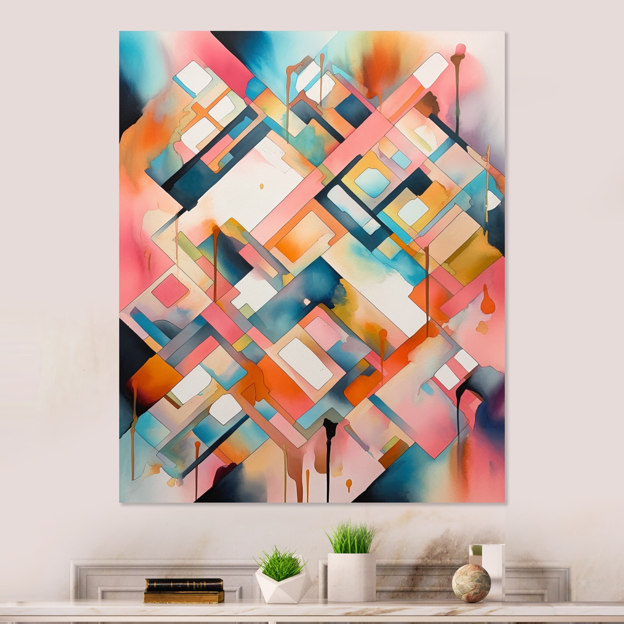 Designart "Pink And Green Cubism in Motion" Abstract Cubism Framed Canvas Art Print