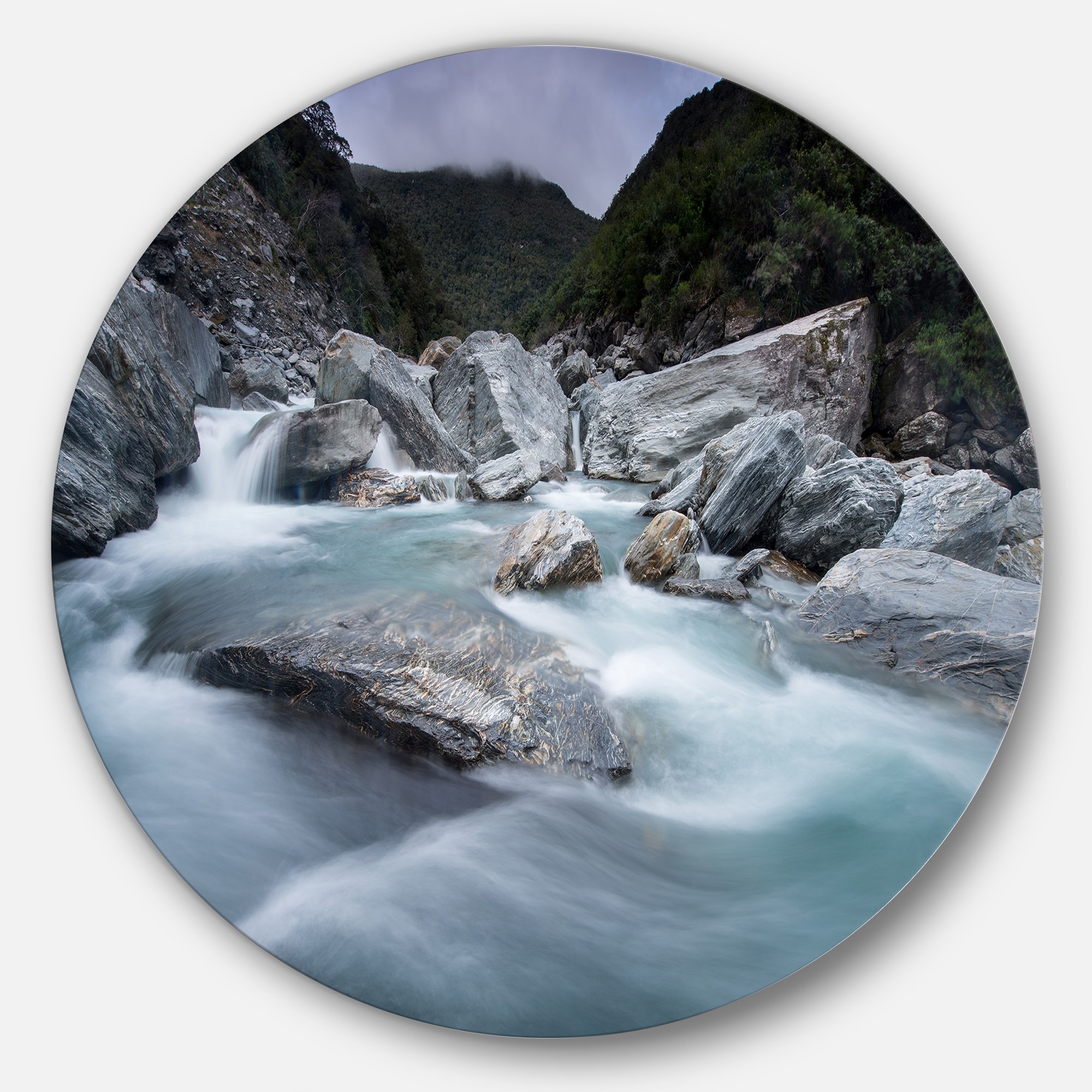 Designart 'Slow Motion Mountain River and Rocks' Landscape Circle Wall Art