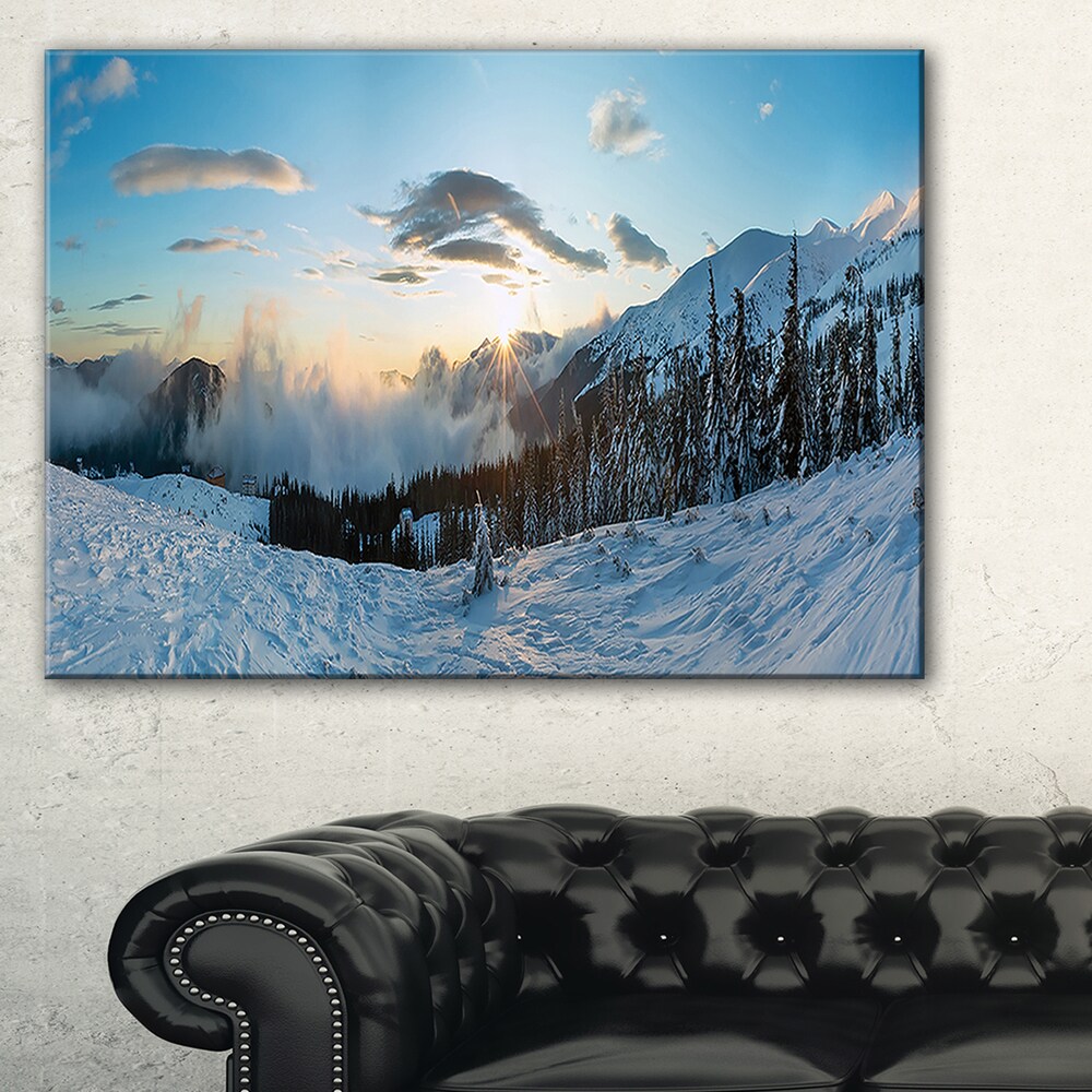Designart "Mountain Snowy Landscape Fox Graphic" Landscapes Canvas artwork