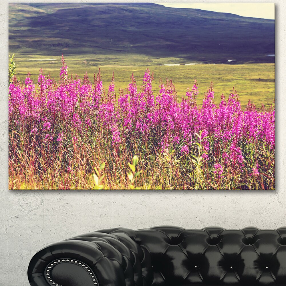 Purple Flowers in Mountain Pasture - Floral Artwork Print on Canvas