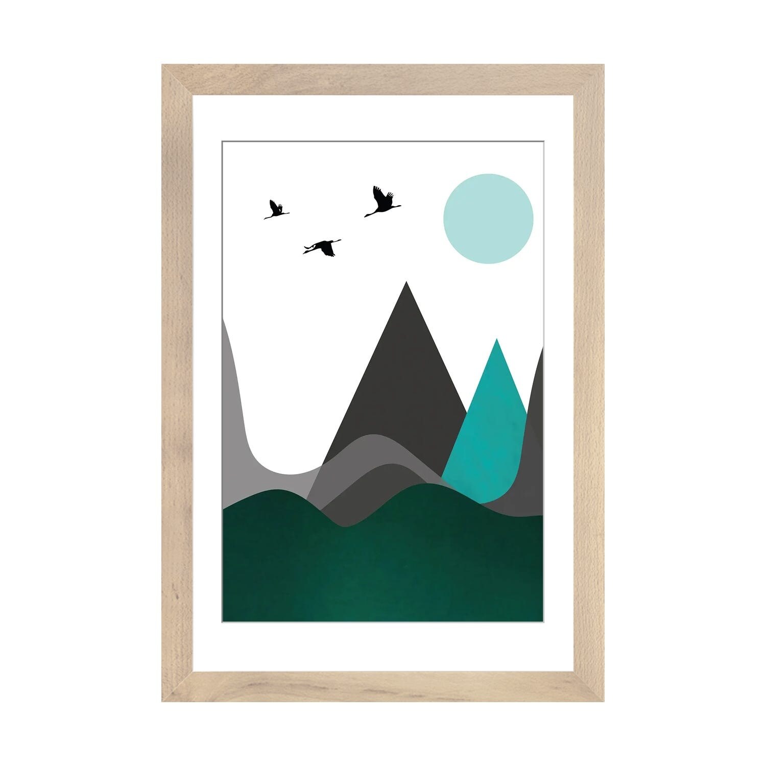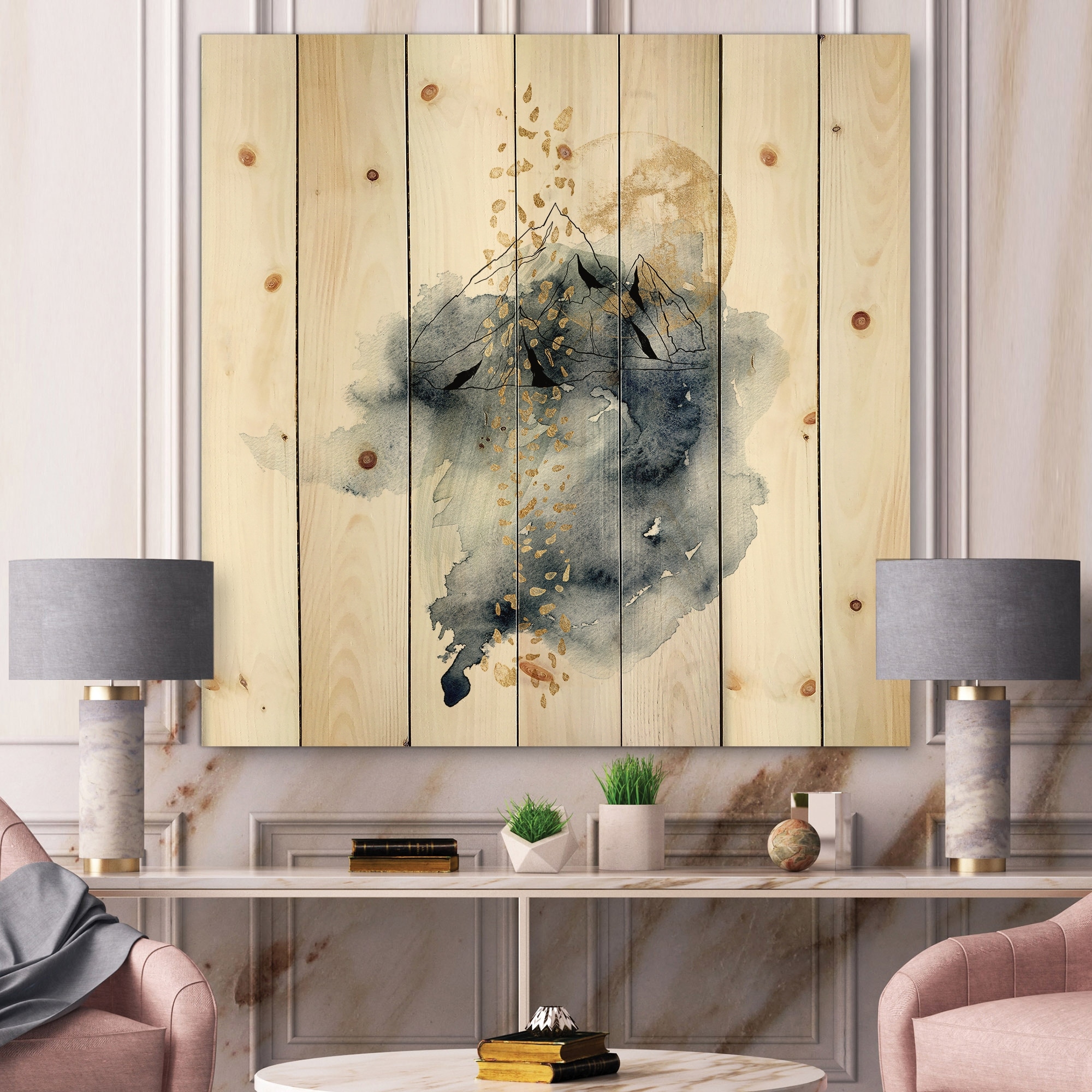 Designart 'Minimalistic Landscape of Mountains With Moon' Modern Print on Natural Pine Wood