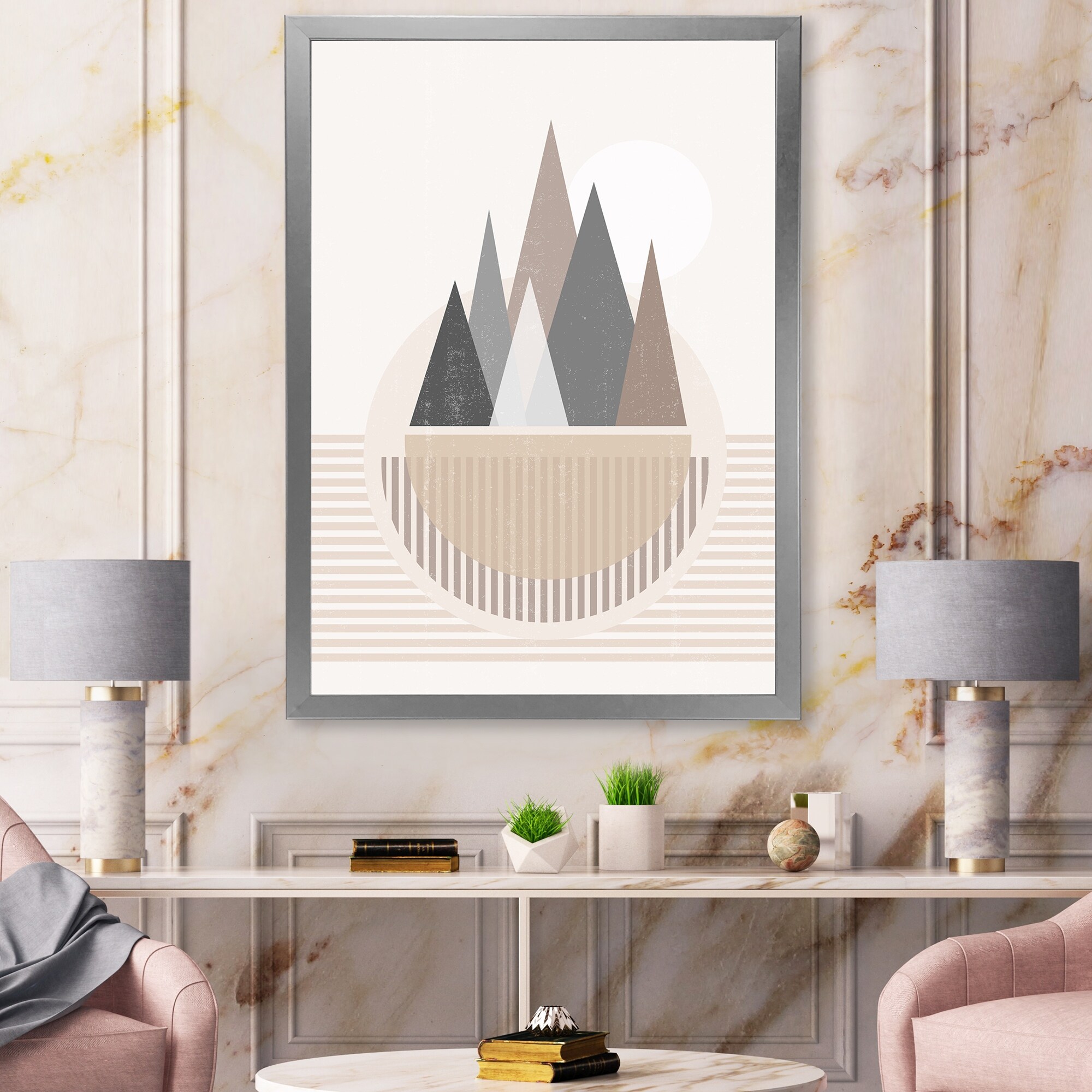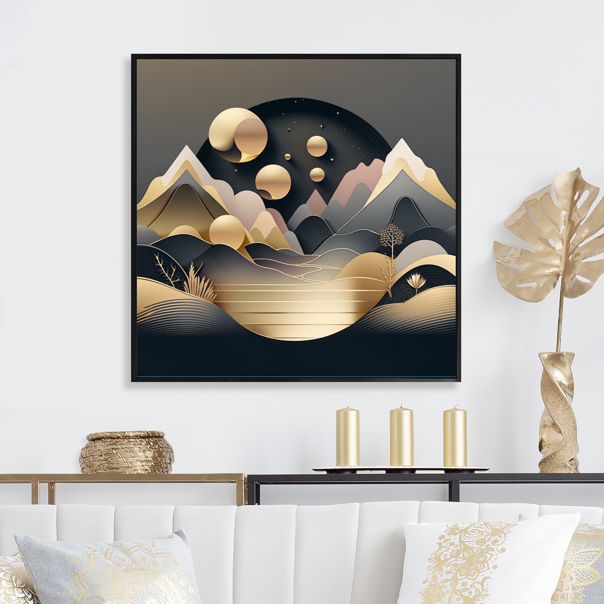 Designart "Abstract Sun and Moon in Mountains III" Modern Framed Art Print