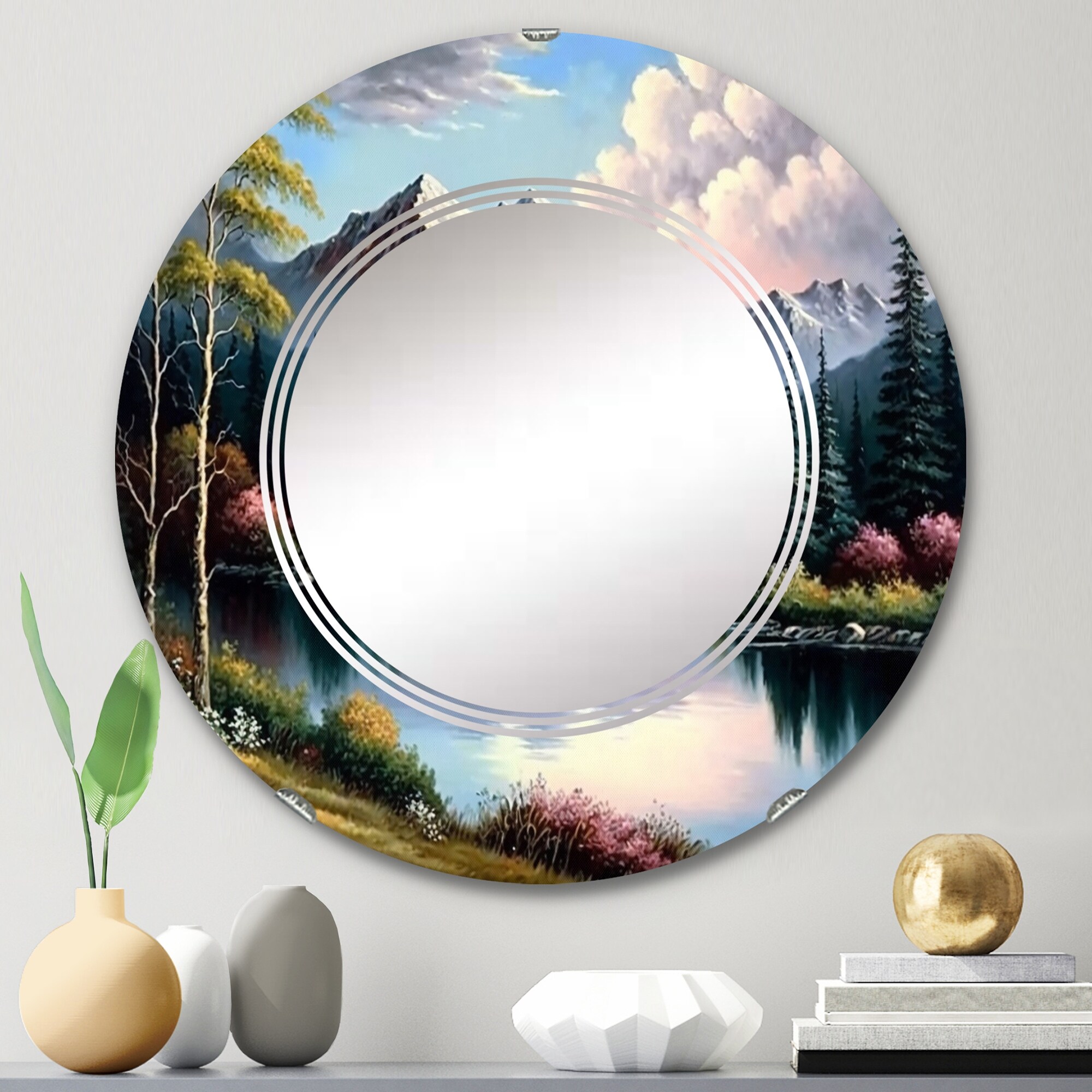 Designart 'River Quietude in the Afternoon' Printed Landscape Mountains Wall Mirror
