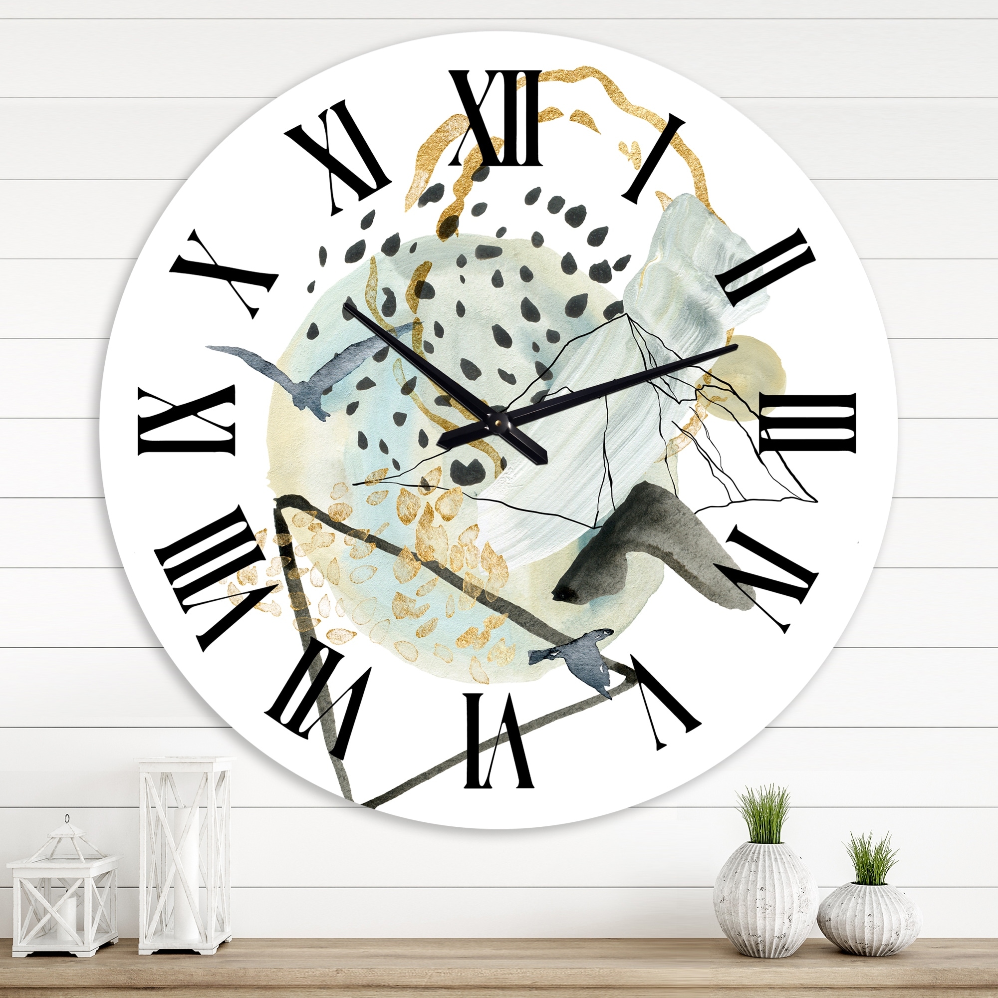 Designart 'Gouache Of Abstract Landscape With Mountain Bird' Modern wall clock