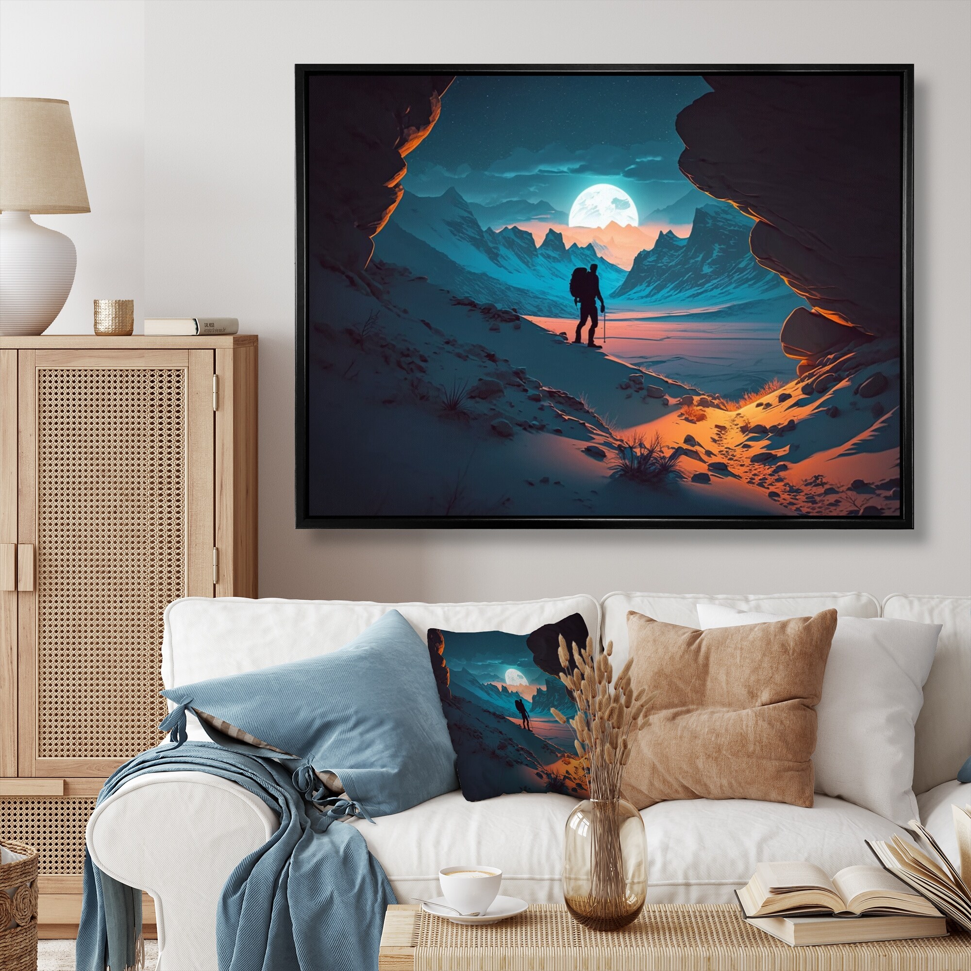 Designart "Hiker In the Mountains" Landscape Mountains Framed Wall Art Prints