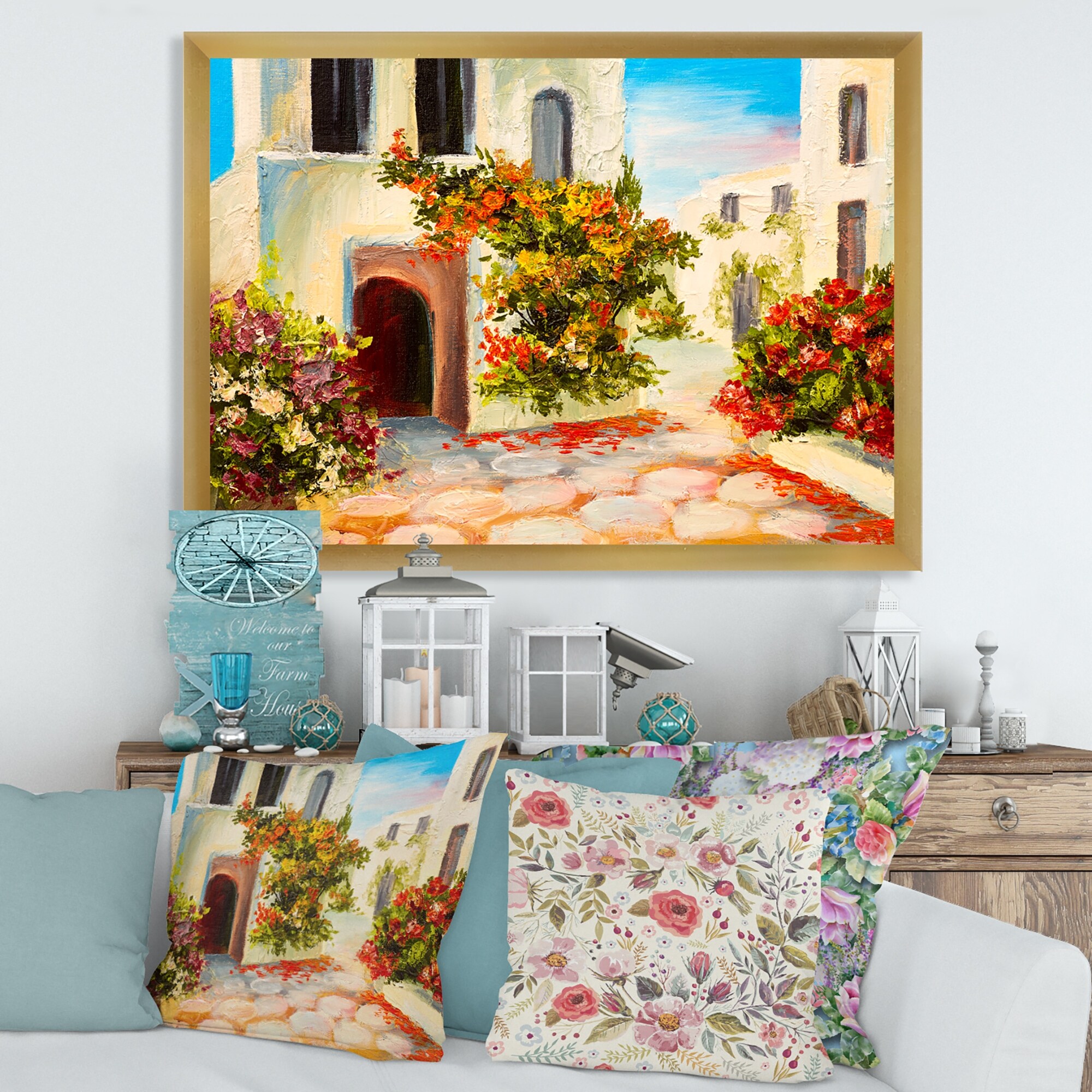 Designart "Little House on the Mountain With Flowers I" Nautical & Coastal Framed Art Print