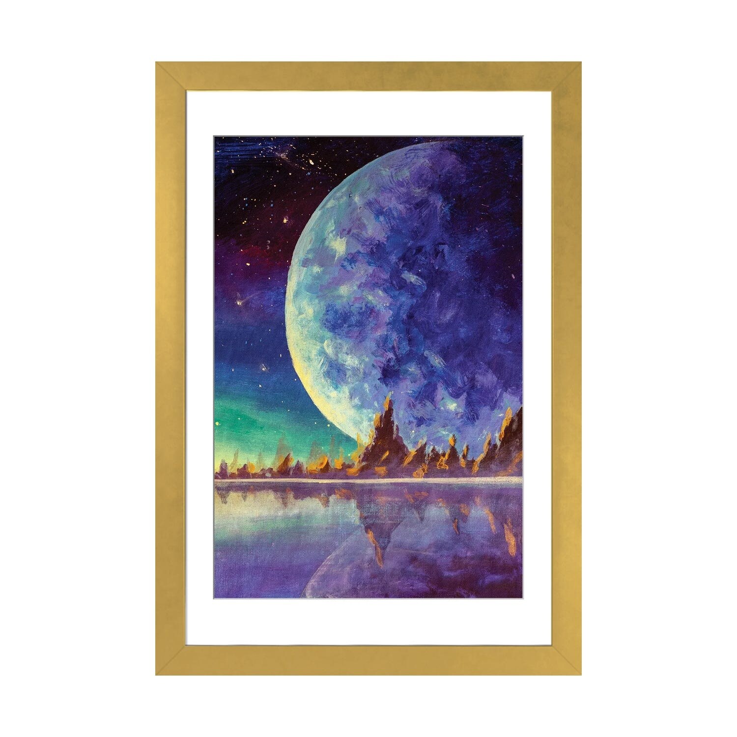 iCanvas "Big Moon Planet Earth Starry Sky, Dawn Glow in Sea Ocean Behind Mountains" by Valery Rybakow