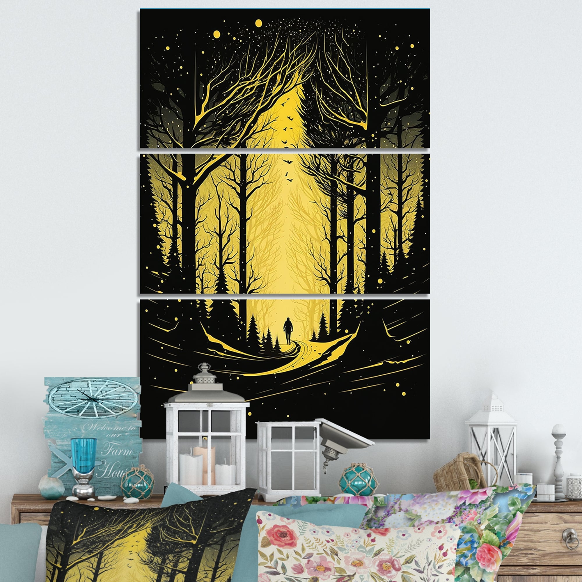 Designart "Winter Trees in the Snow Mountain Forest IV" Landscape Forest Canvas Art Print - 3 Panels