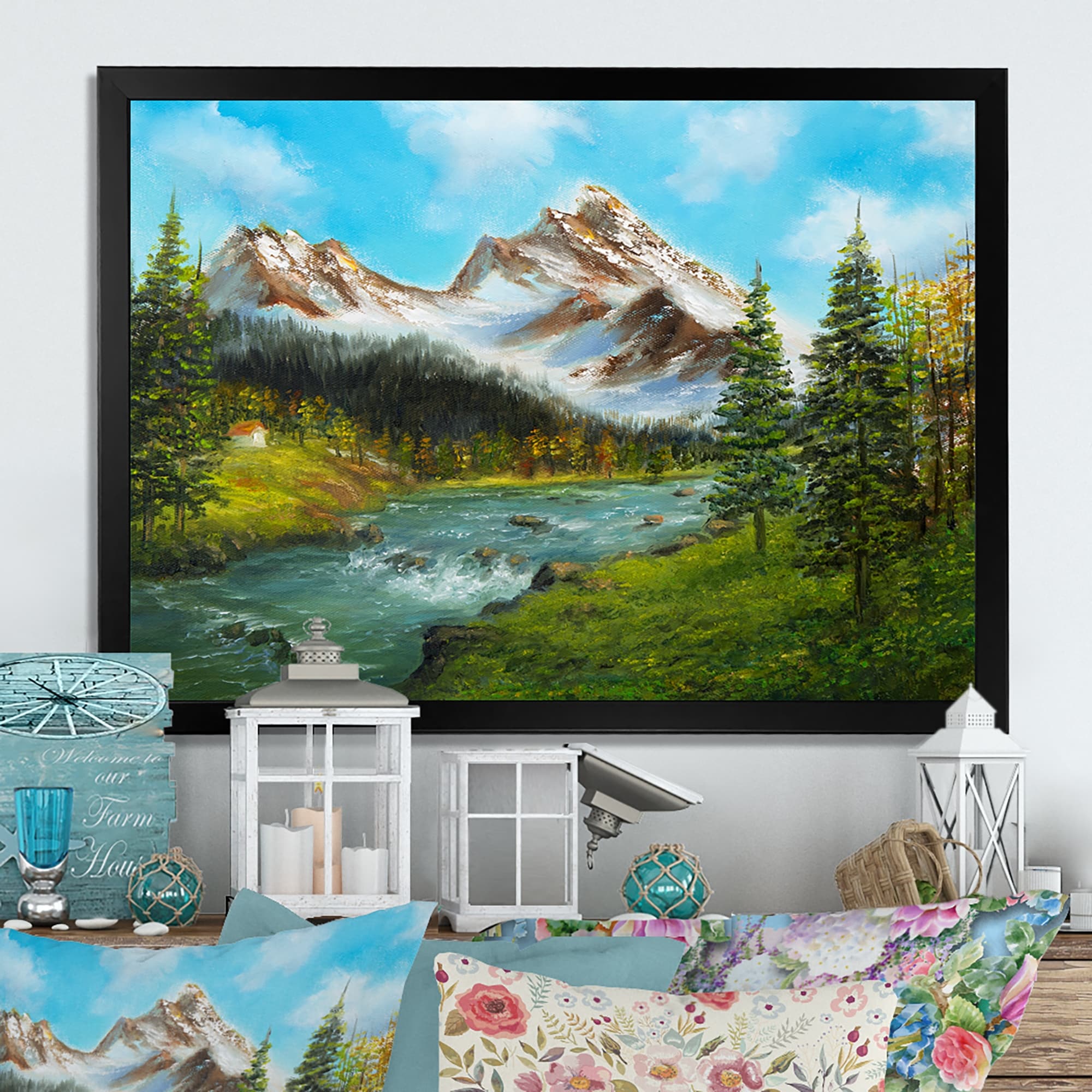 Designart "Cabin In the Mountains" Cabin & Lodge Framed Canvas Wall Art Print