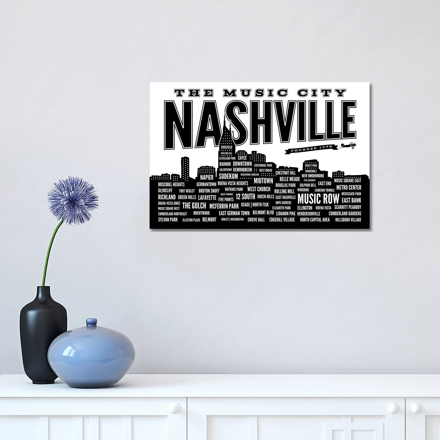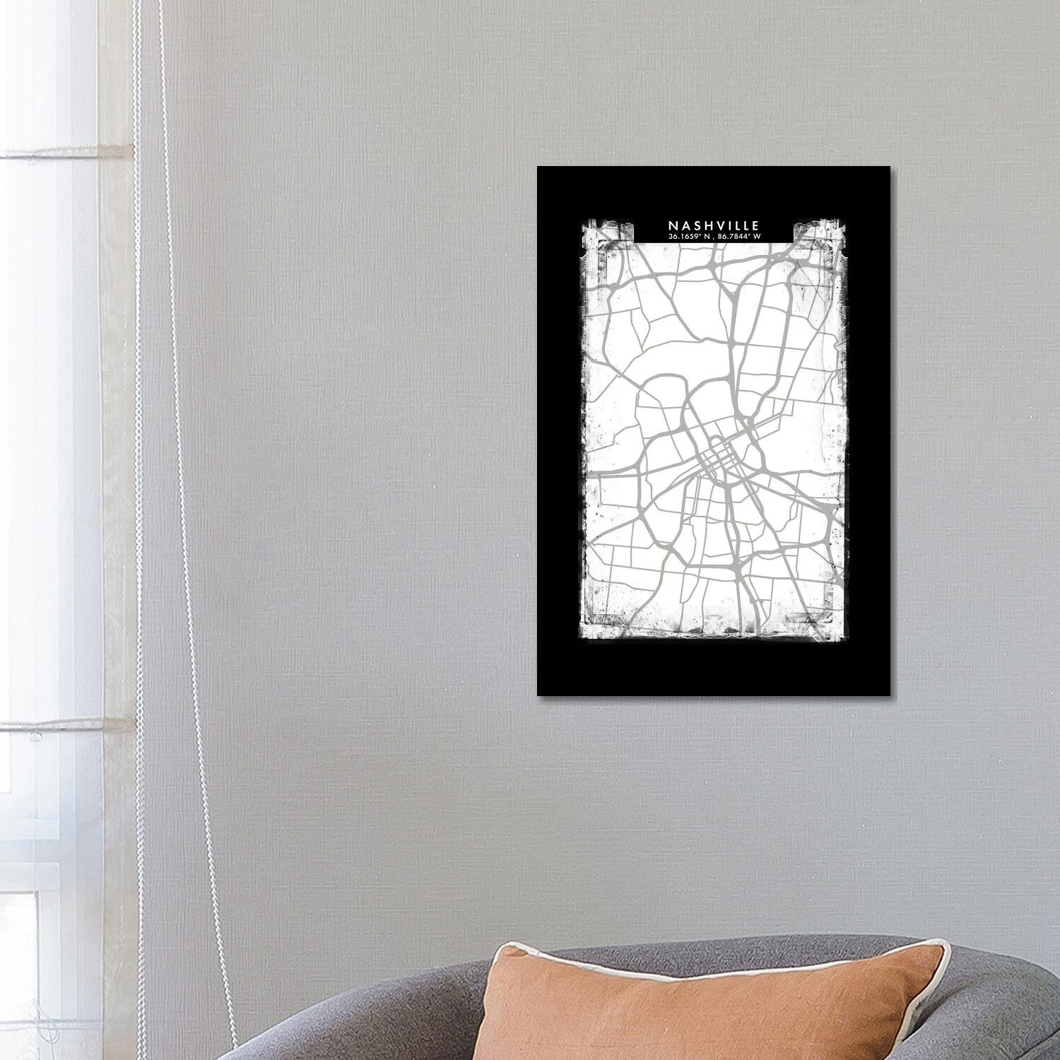 iCanvas "Nashville City Map Black White Grey Style" by WallDecorAddict Canvas Print