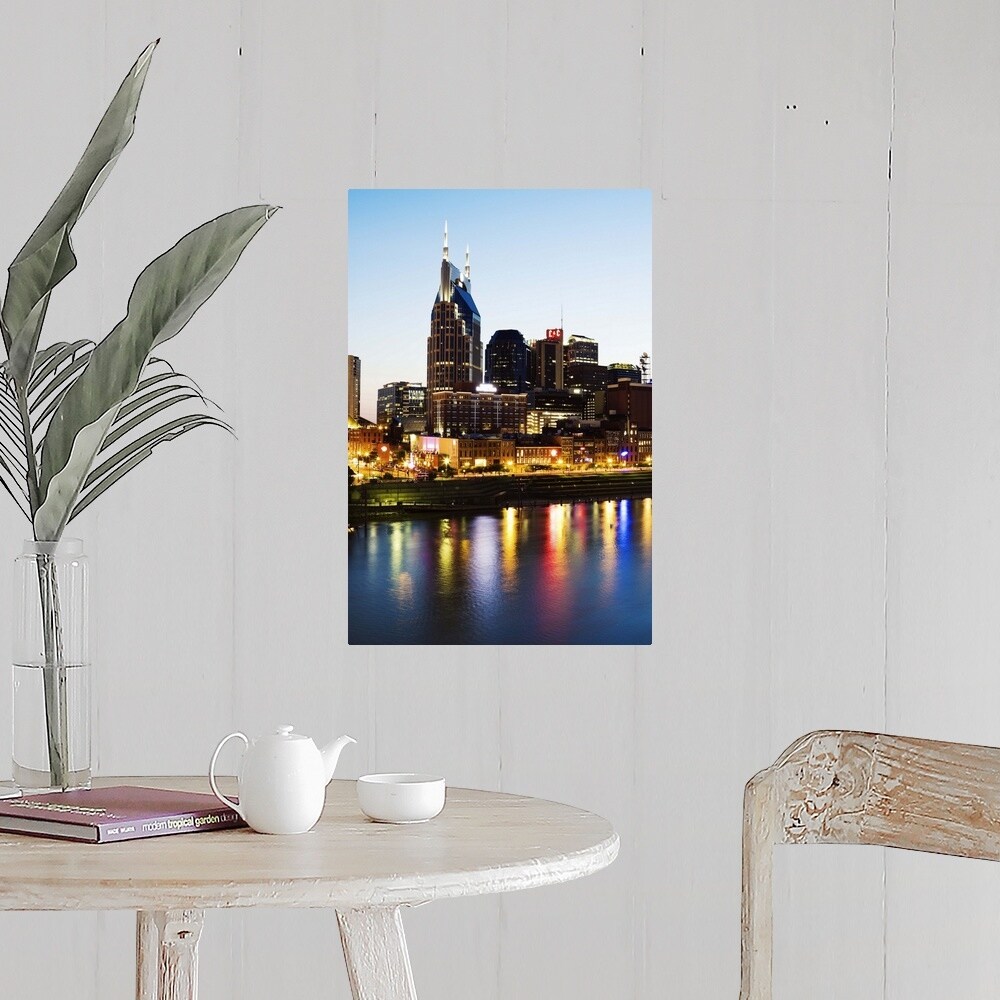 Easy Art Prints Panoramic Images's 'Buildings lit up at dusk, Nashville, Tennessee, USA' Premium Canvas Art