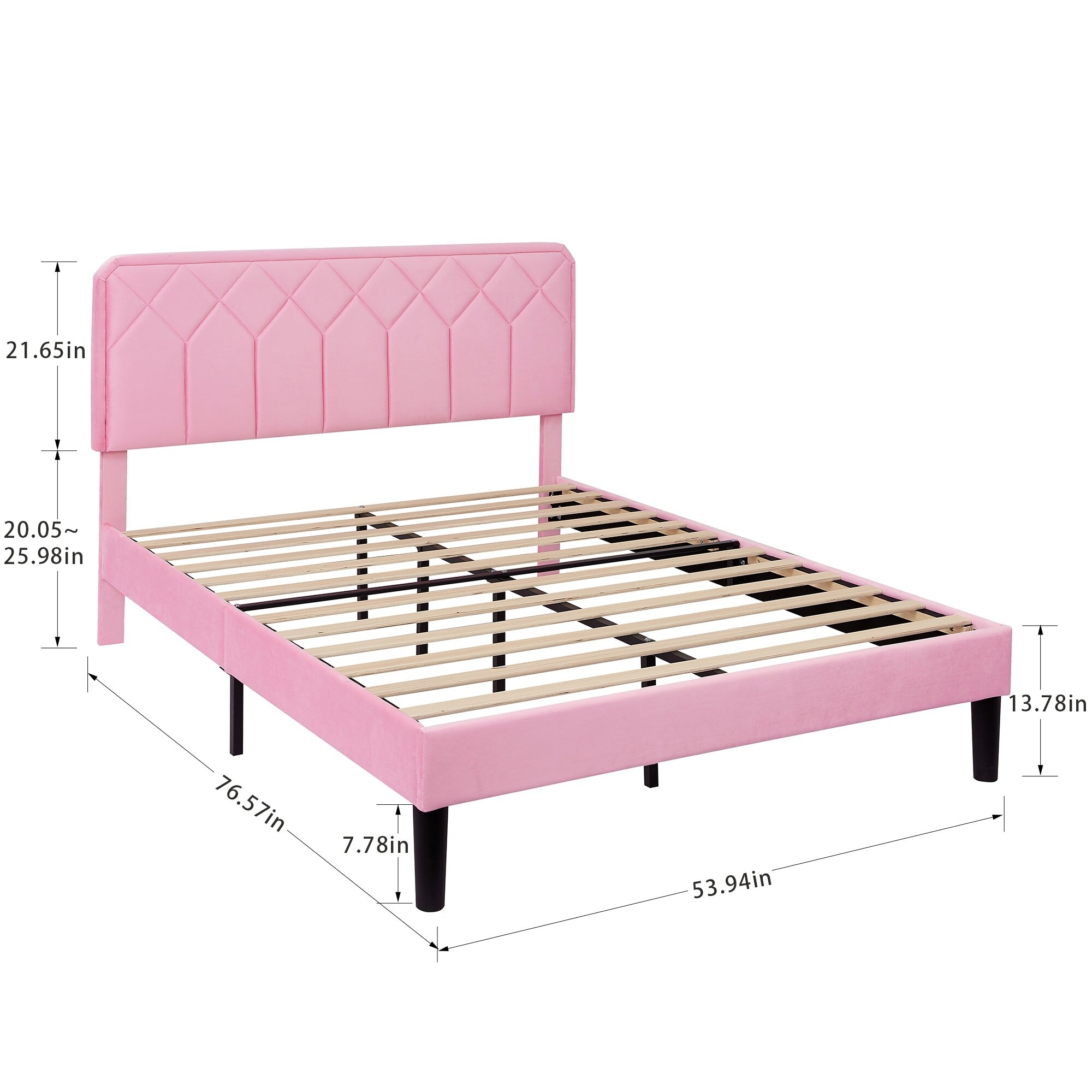 Upholstered Velvet Platform Bed Frame with Adjustable High HeadboardSolid Support,No Box Spring Needed,Easy Assembly