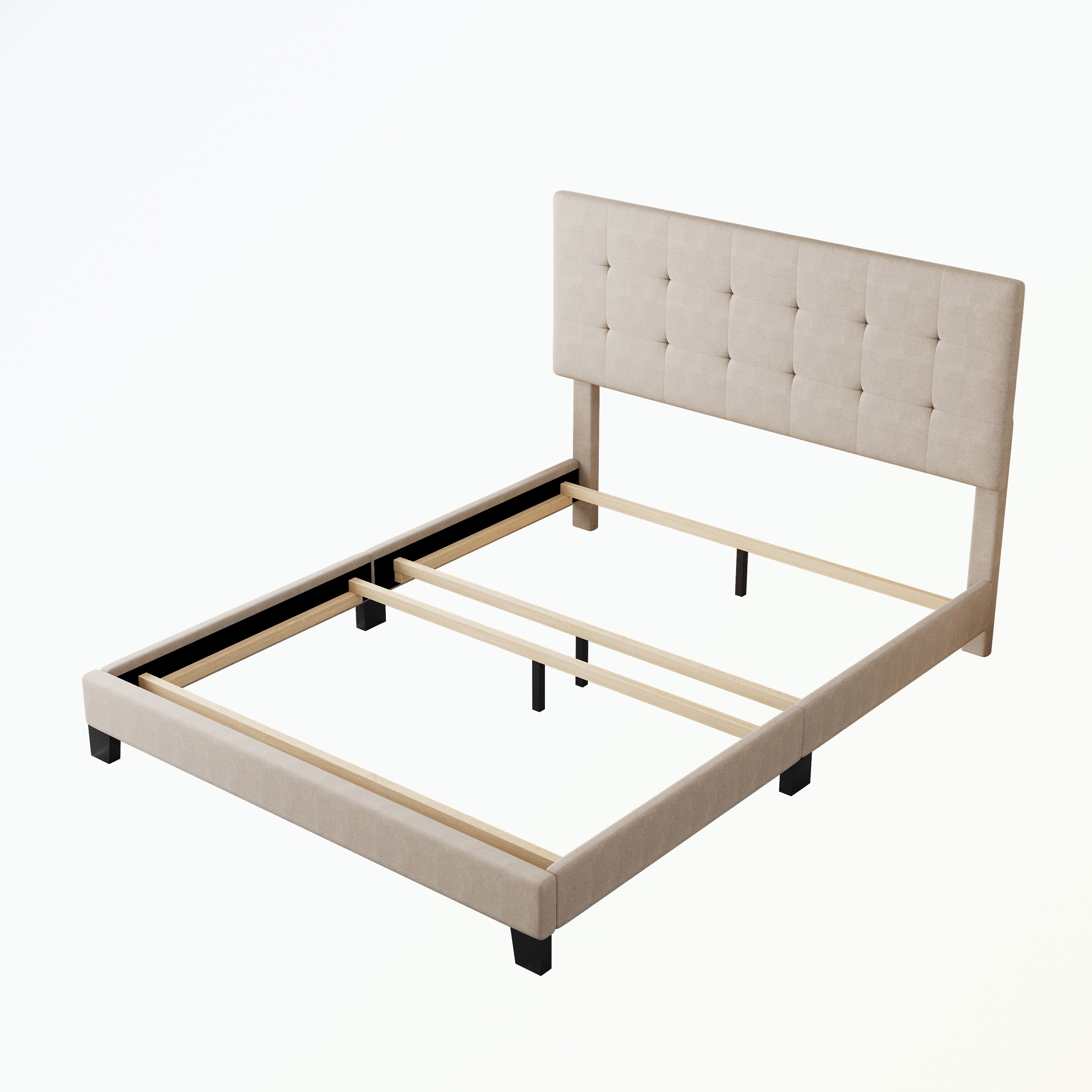 Queen Size Upholstered Platform Bed with Tufted Headboard, Box Spring Needed