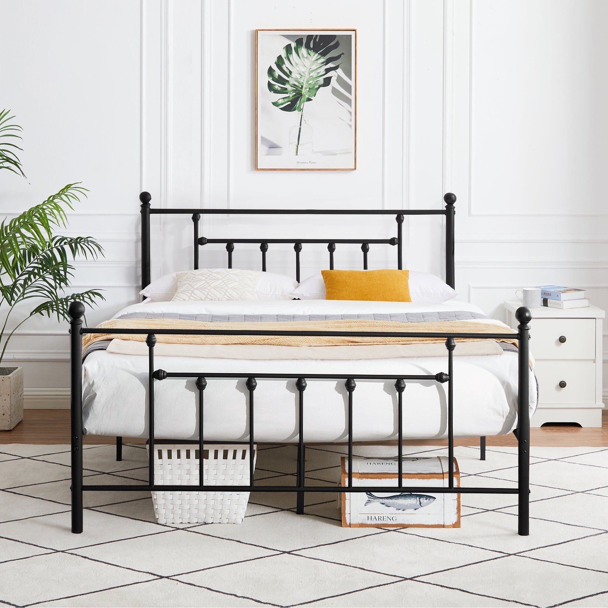 Metal Bed Frame Queen Size Platform No Box Spring Needed with Vintage Headboard and Footboard /Premium Steel Slat Support