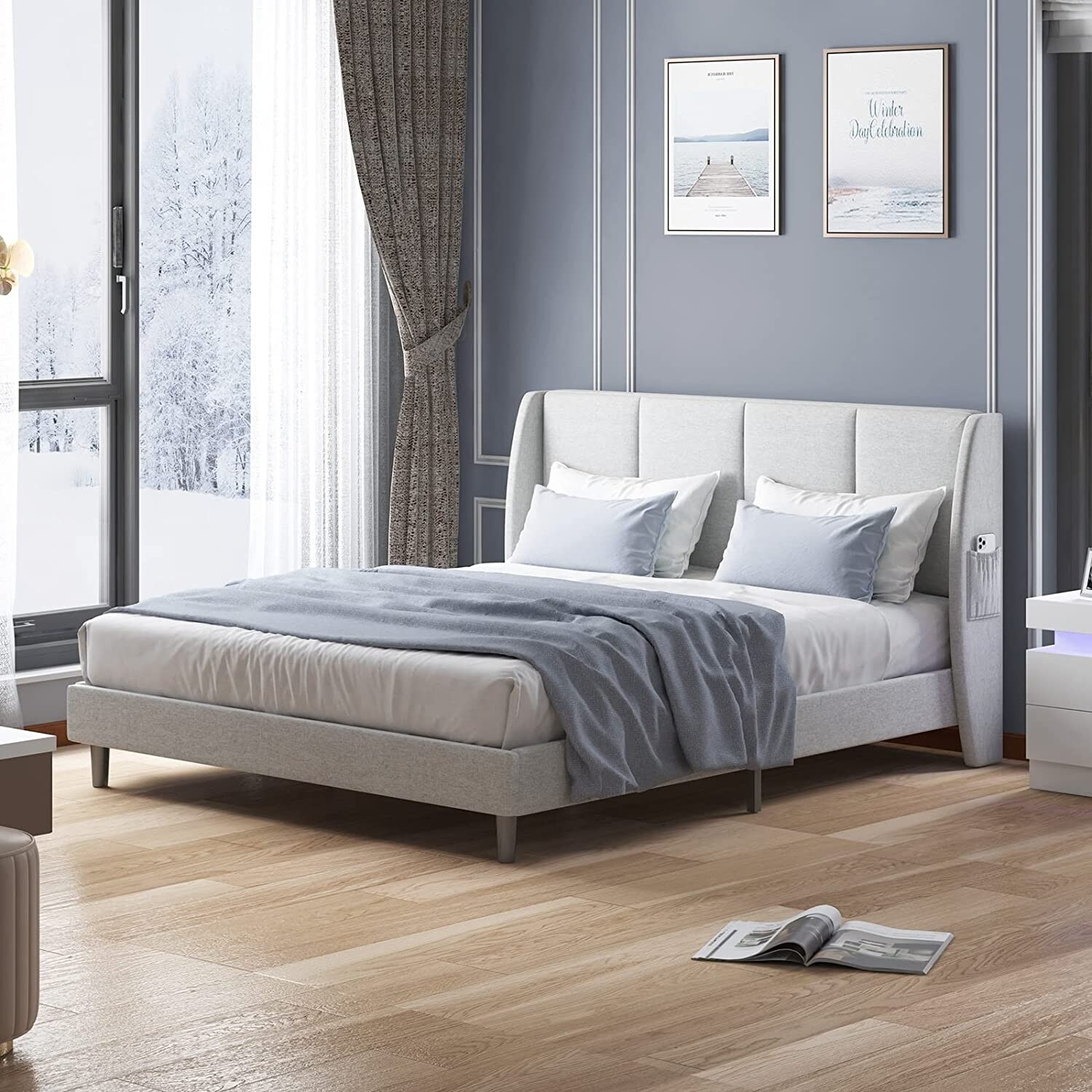 Platform Bed Frame with Stylish Modern Soft Wingback,Sturdy Wood Slat Support, No Box Spring Needed