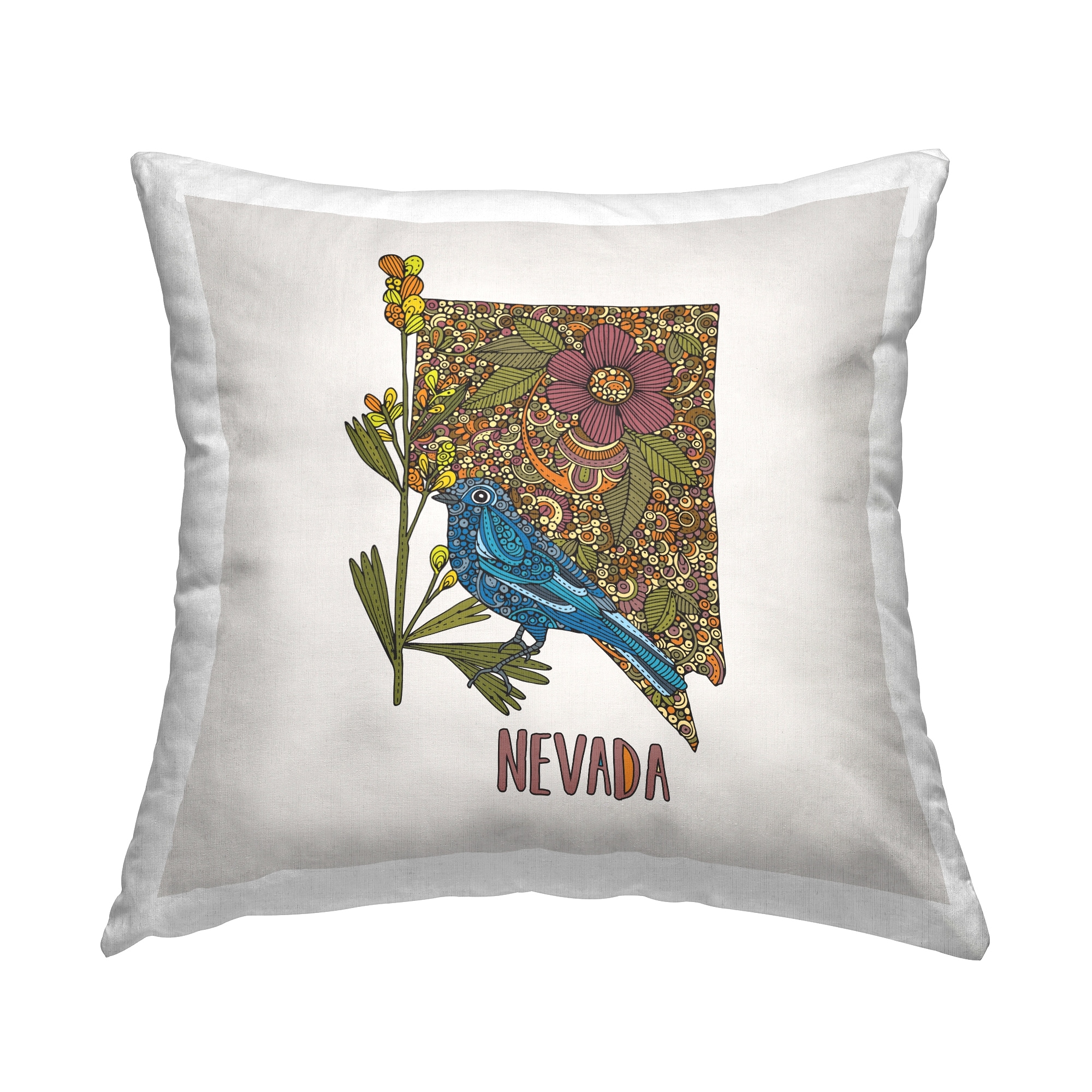 Stupell Industries Nevada State Bluebird Florals Printed Throw Pillow Design by Valentina Harper