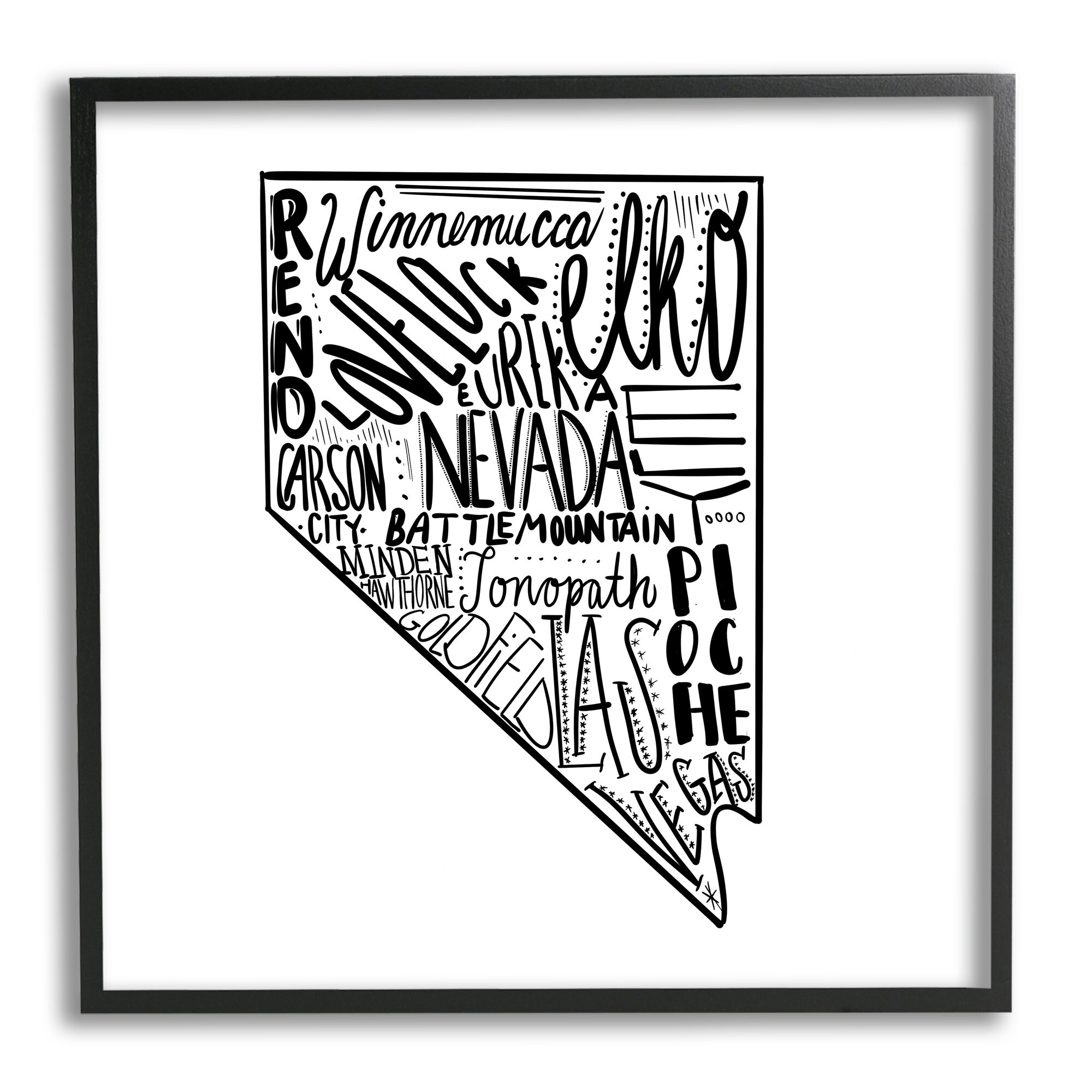 Stupell Industries Nevada Cities Typography Framed Giclee Texturized Wall Art, Design By the Saturday Evening Post
