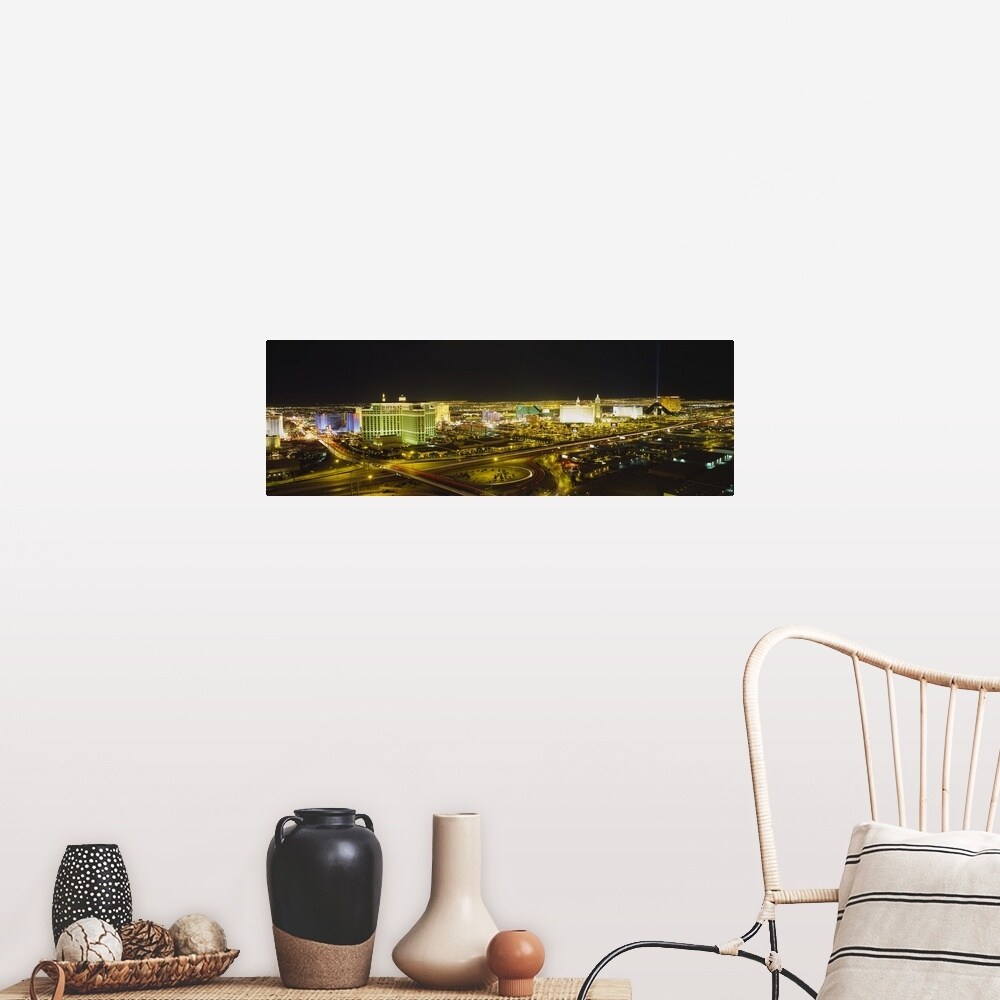 Easy Art Prints Panoramic Image 'High angle view of a city at night, Las Vegas, Clark County, Nevada, USA' Canvas Art
