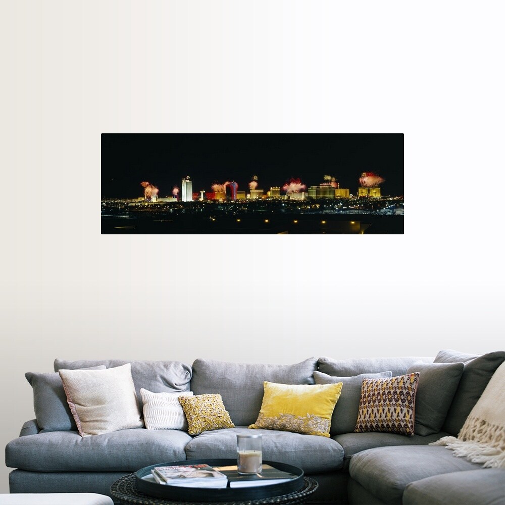 Easy Art Prints Panoramic Images's 'City lit up at night, Las Vegas, Nevada, USA' Premium Canvas Art