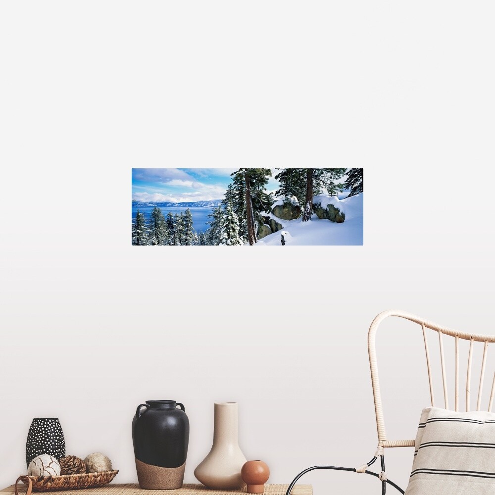 "Snow covered trees on mountainside, Lake Tahoe, Nevada" Poster Print - Multi