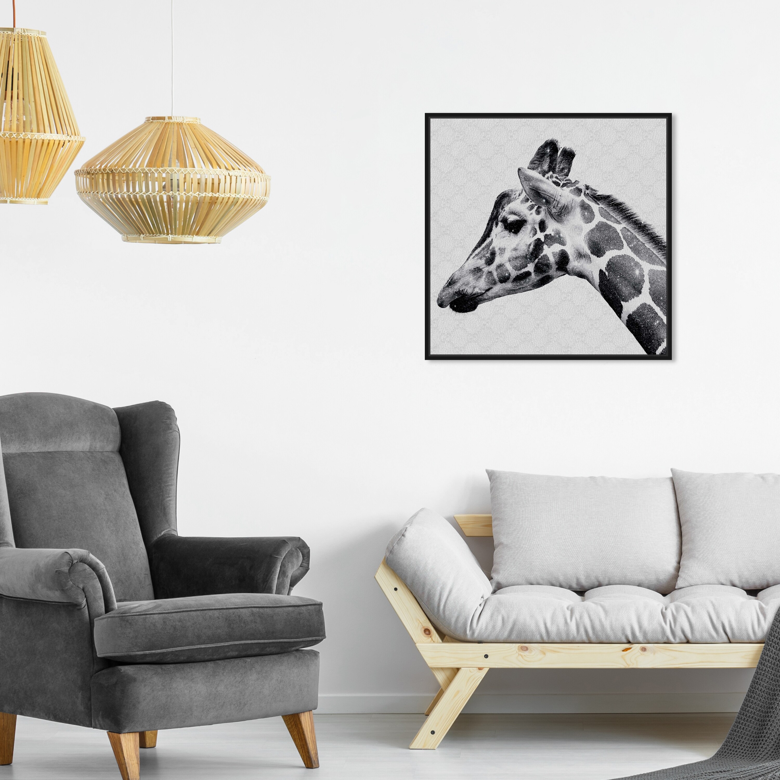 Oliver Gal 'Glam Noir Giraffe' Fashion and Glam Wall Art Framed Canvas Print Zoo and Wild Animals - Gray, Black