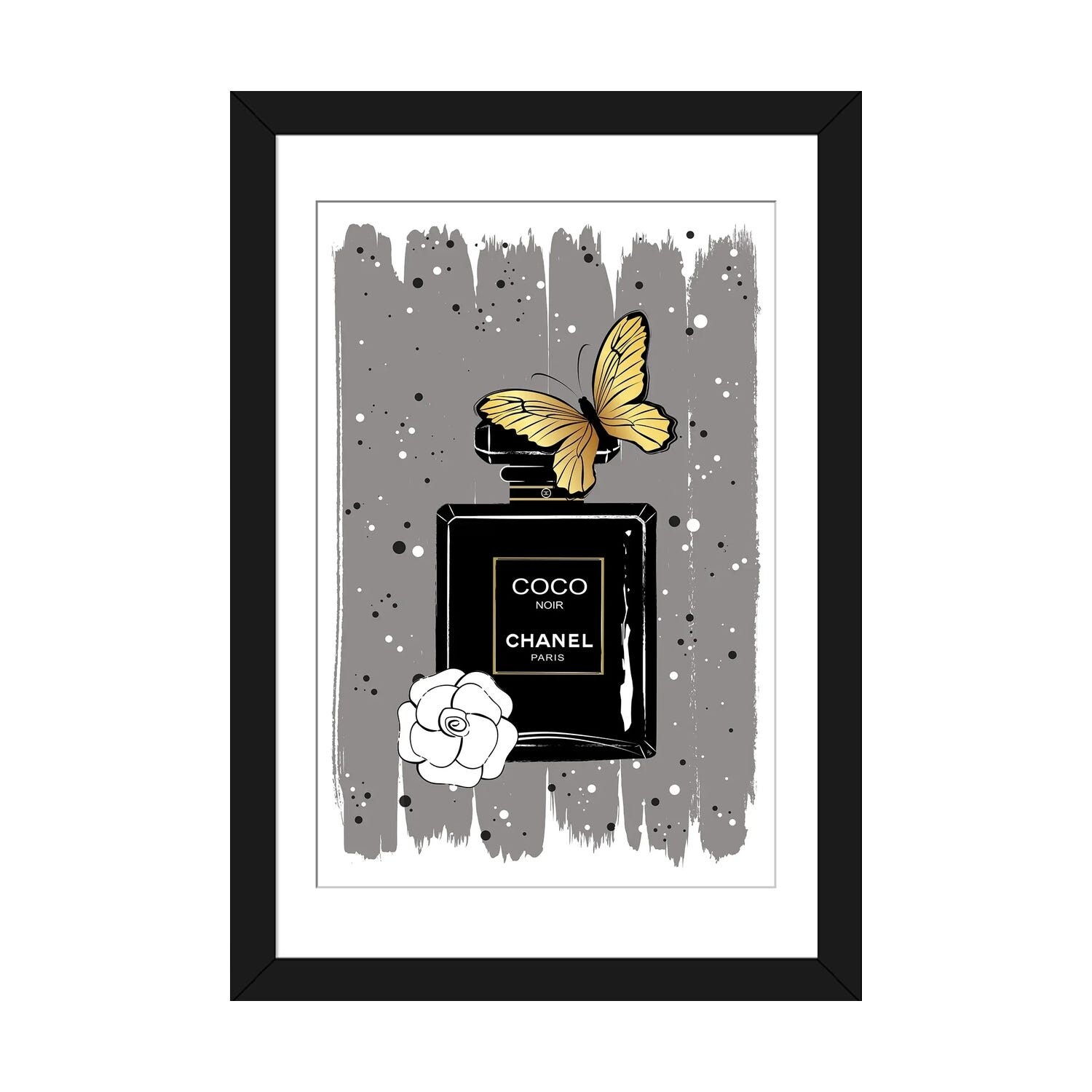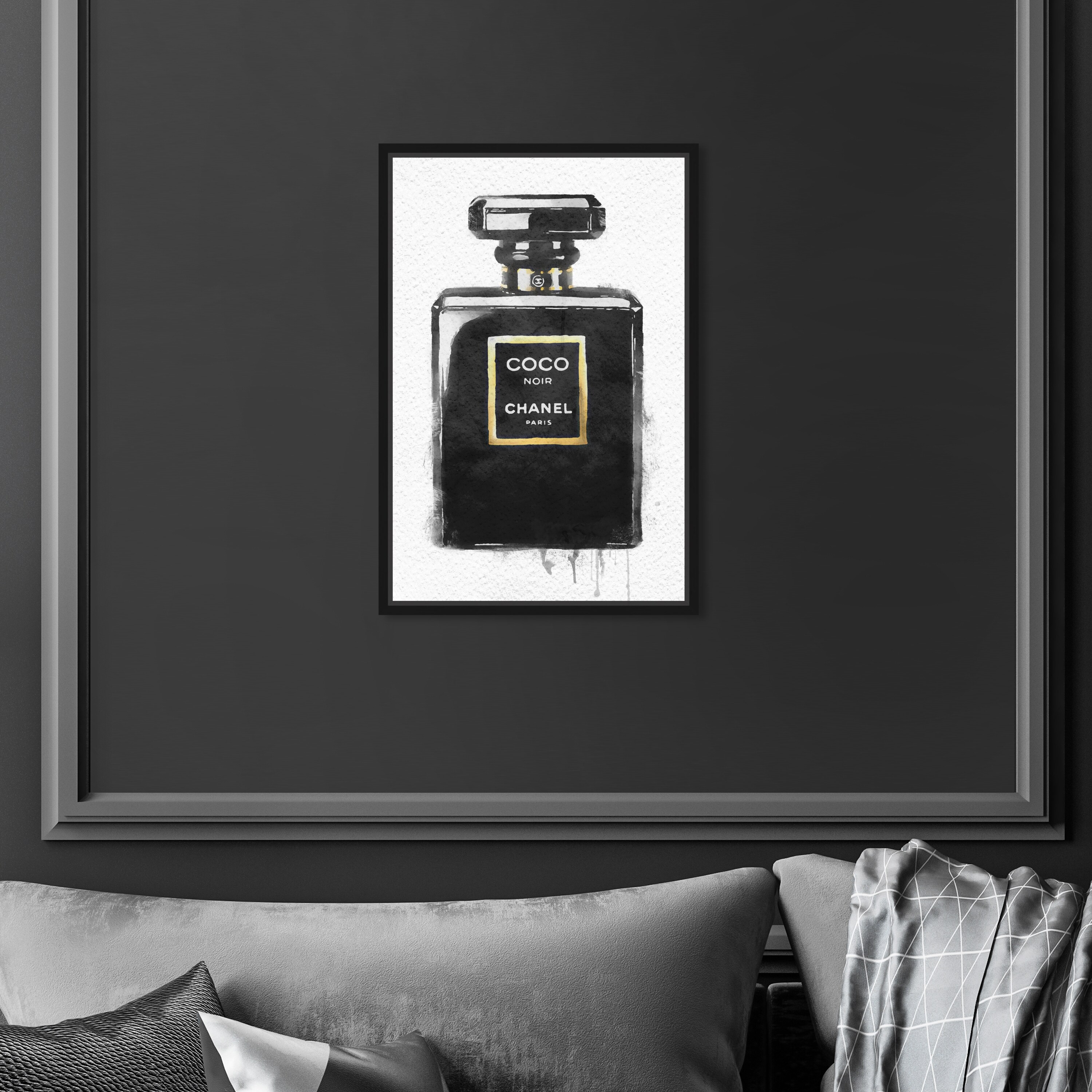 Classic Glitter Noir, Noir Paris Perfume Modern Black Canvas Wall Art Print for Bath