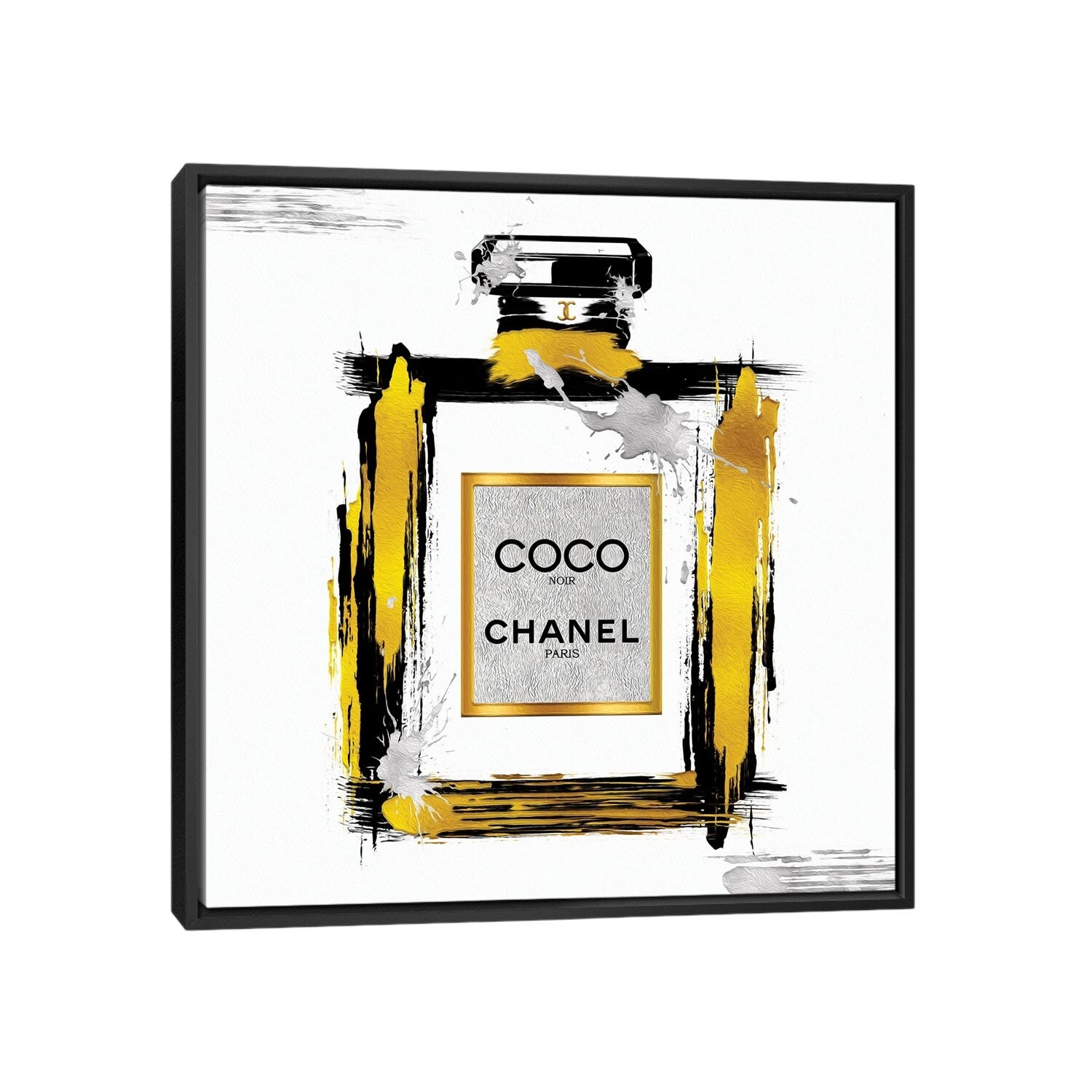 iCanvas "Black & Gold Noir Abstract Perfume Bottle" by Pomaikai Barron Framed Canvas Print