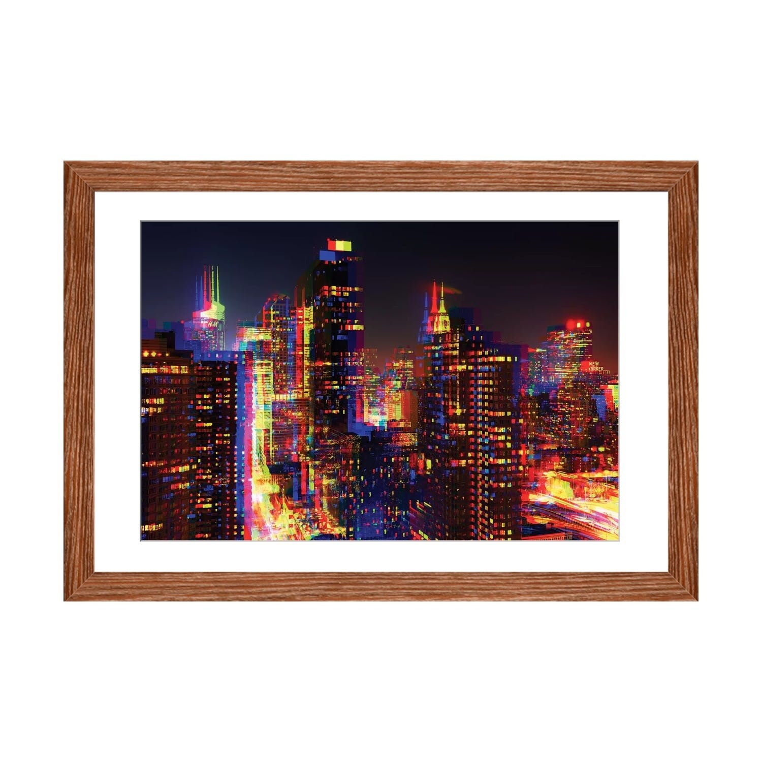 Illuminated NYC Downtown Buildings - Cityscape Canvas print - Multi-color